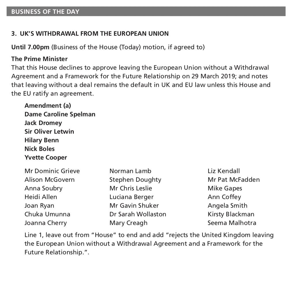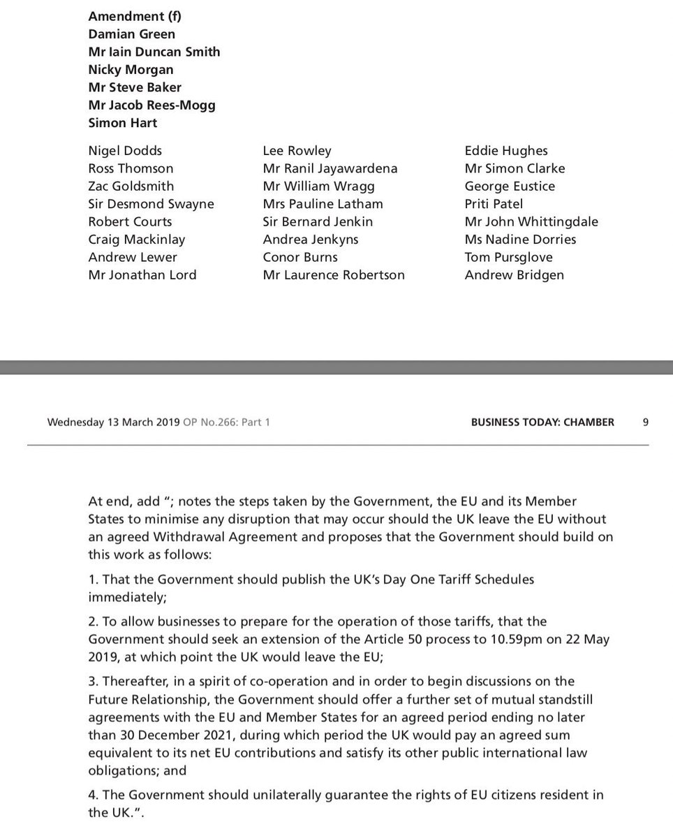 Interesting decision on Malthousers amendment too for Government (but no actual Malthouse!) - but look the ERG & DUP Dep leader now proposing an extension of Article 50 until 2259 on 22 May... and then a form of No Deal/WTO.
