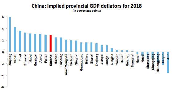 How has this happened? Mechanically, it's all about nominal growth. Reported provincial real growth rates still exceeded the national growth rate (China grew 6.6% last year; its provinces, on average, 7.1%). But there have been huge adjustments in nominal GDP. (3/)