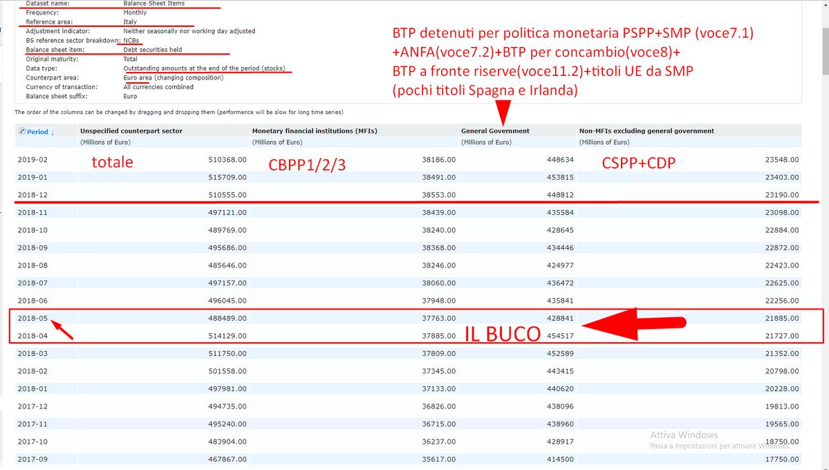 il famoso "BUCO" di maggio 2018 nel portafoglio titoli di #Bankitalia è ancora più evidente usando il database #ECB SDW e quadrando con bilancio Bankit 2018...