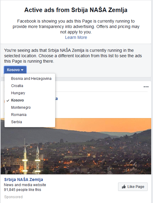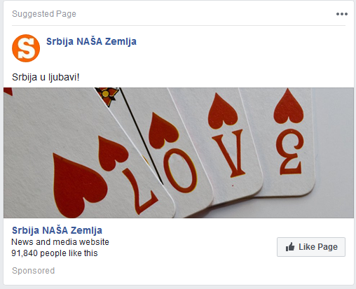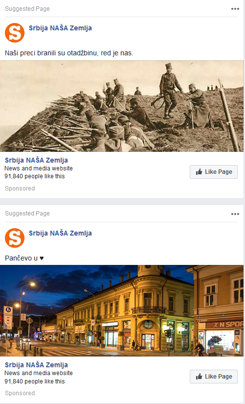 Stranica takođe ima aktivne kampanje na srpskom jeziku u svim susednim zemljama. Pretpostavljam da se njihova strategija tamo za sada zasniva na nabijanju followera i definisanju publike za lookalike jer idu uglavnom najgeneričkije, pozitivne, patriotske poruke.