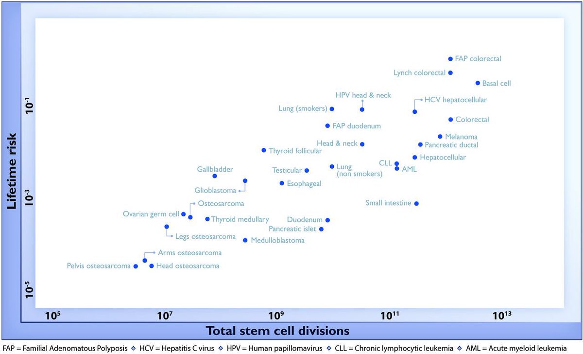 And the tissues whose cells divide more have a higher likelihood of developing cancer. science.sciencemag.org/content/347/62…