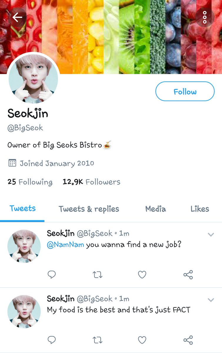 🌟Seokjin - Culinary school graduate - runs Big Seoks Bistro - Jungkooks big brother - Yoongi's best friend