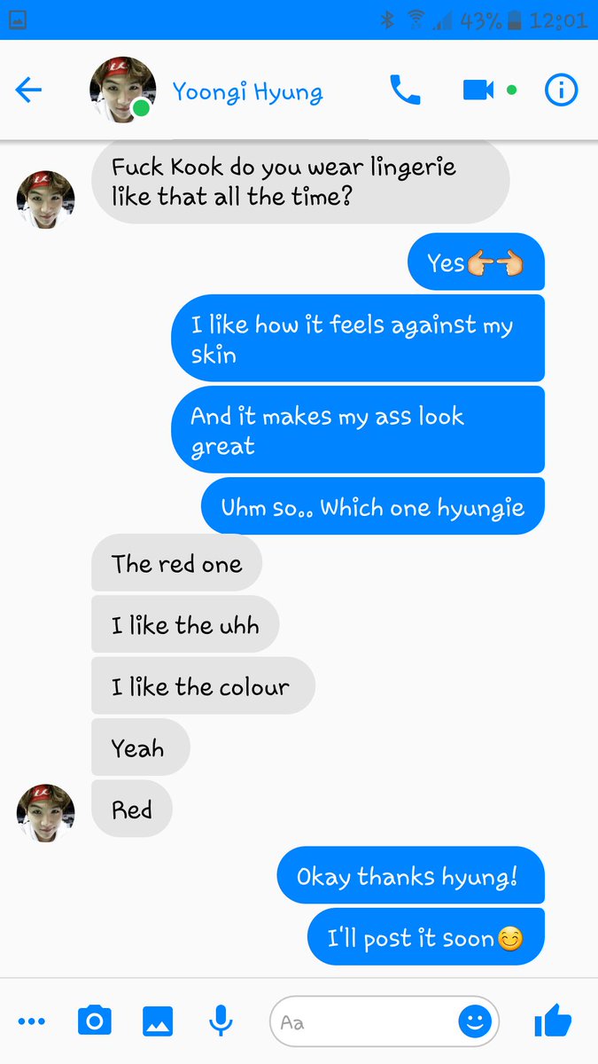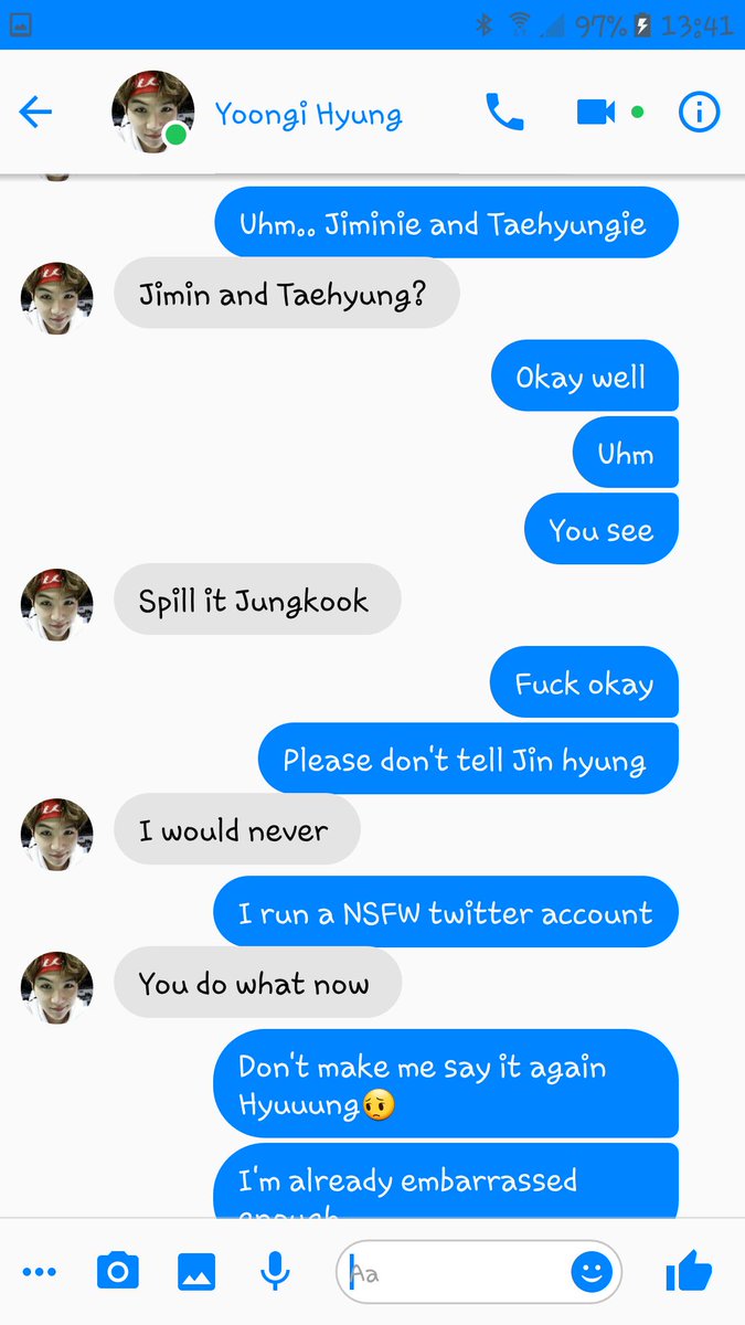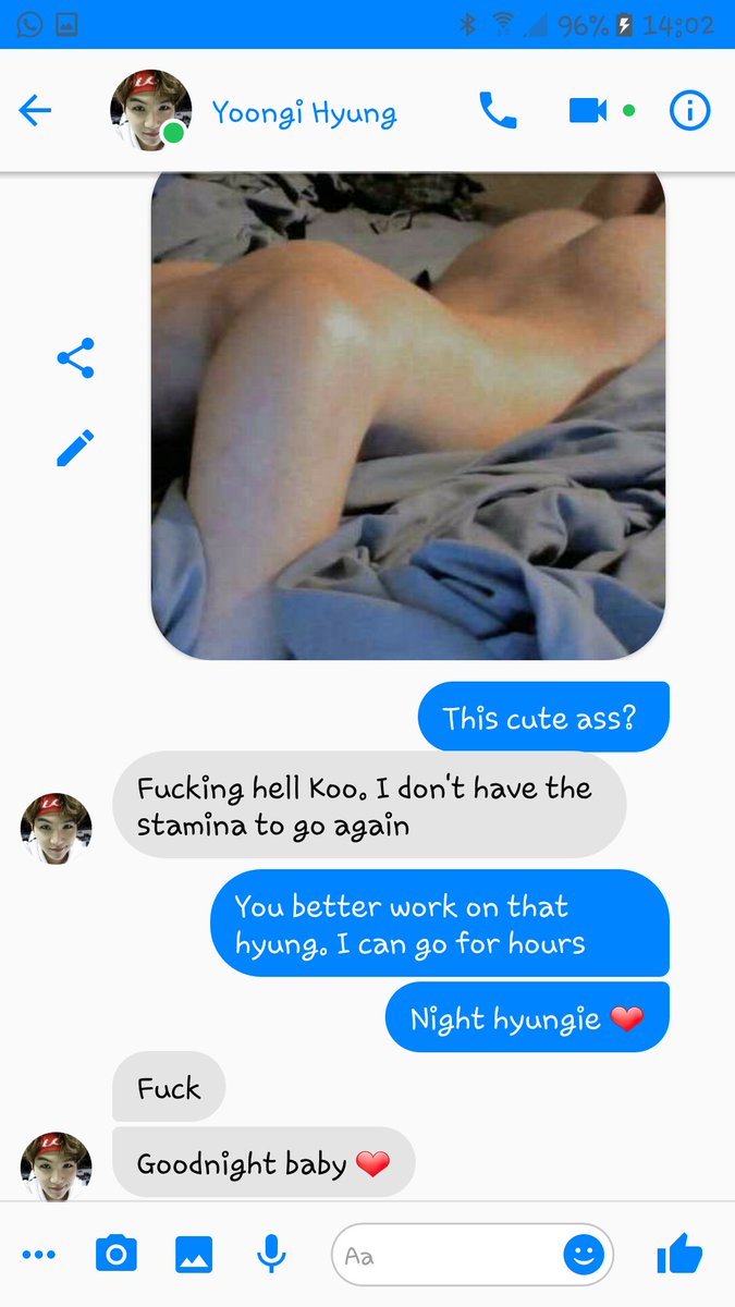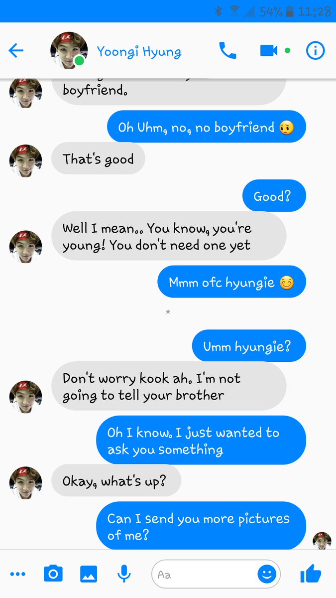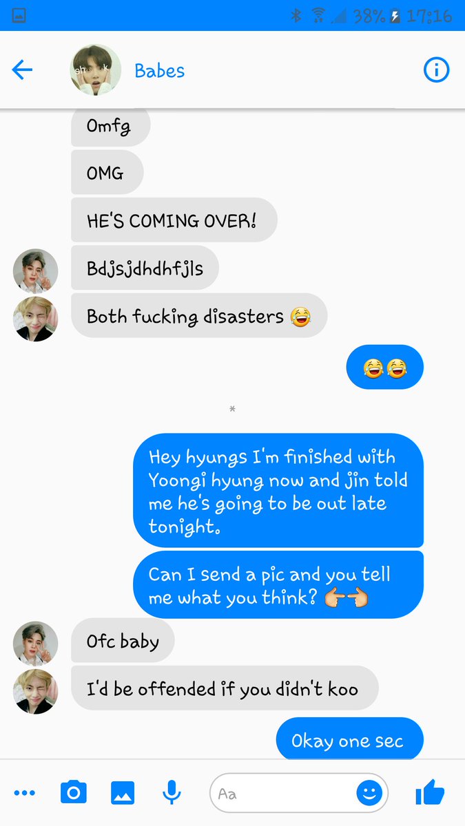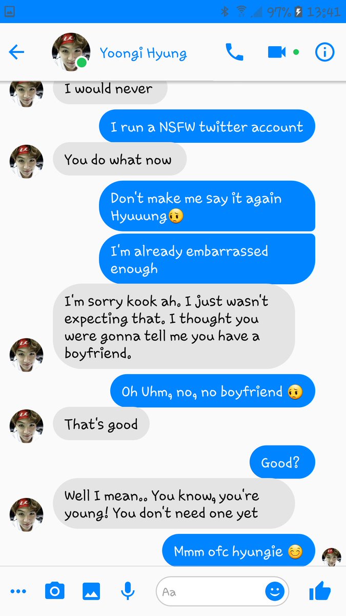 Jungkook likes to send Yoongi, his brothers best friend, photos that he has taken whilst out on his travels around town. One day however he slips up and sends something meant for his NSFW account.