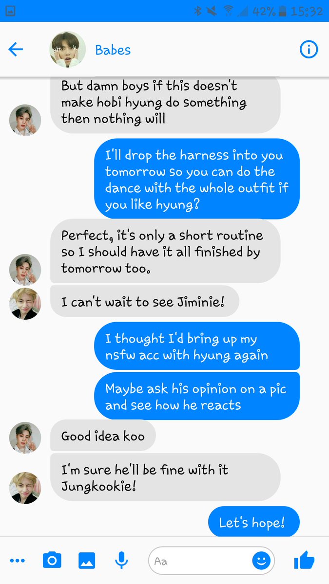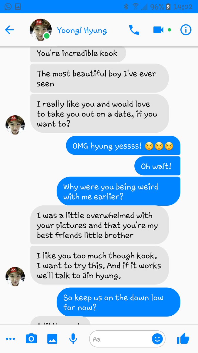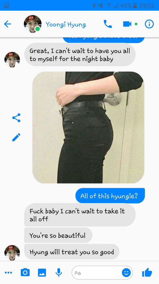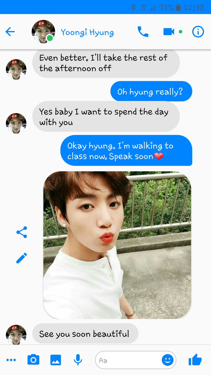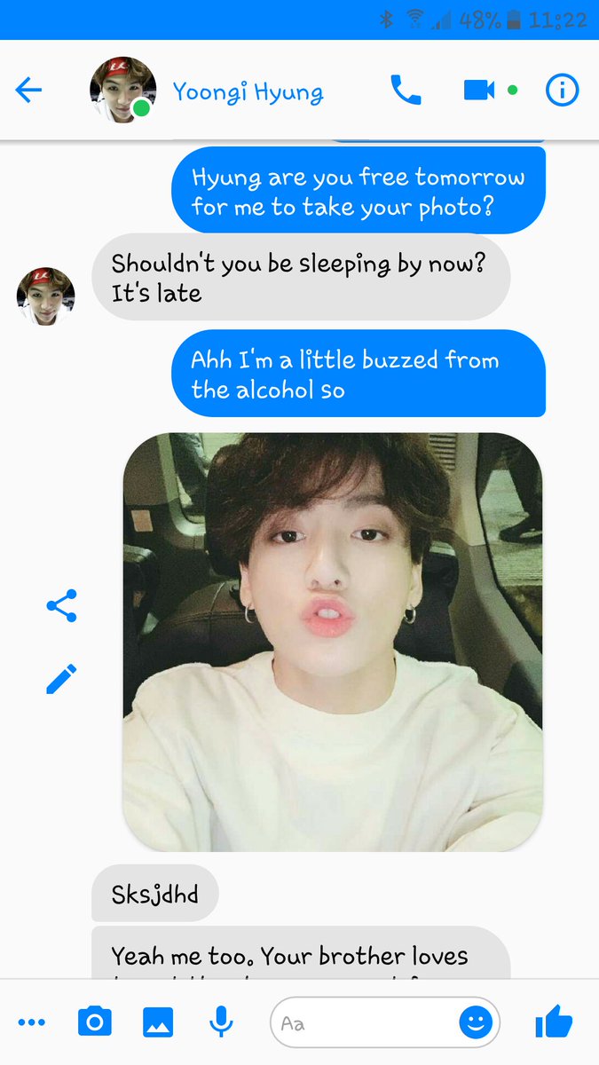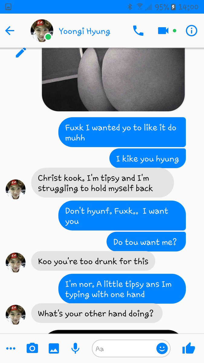 Jungkook likes to send Yoongi, his brothers best friend, photos that he has taken whilst out on his travels around town. One day however he slips up and sends something meant for his NSFW account.
