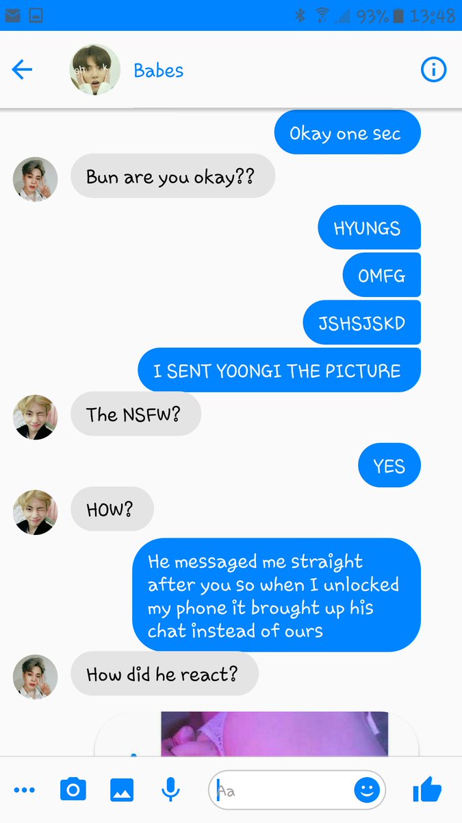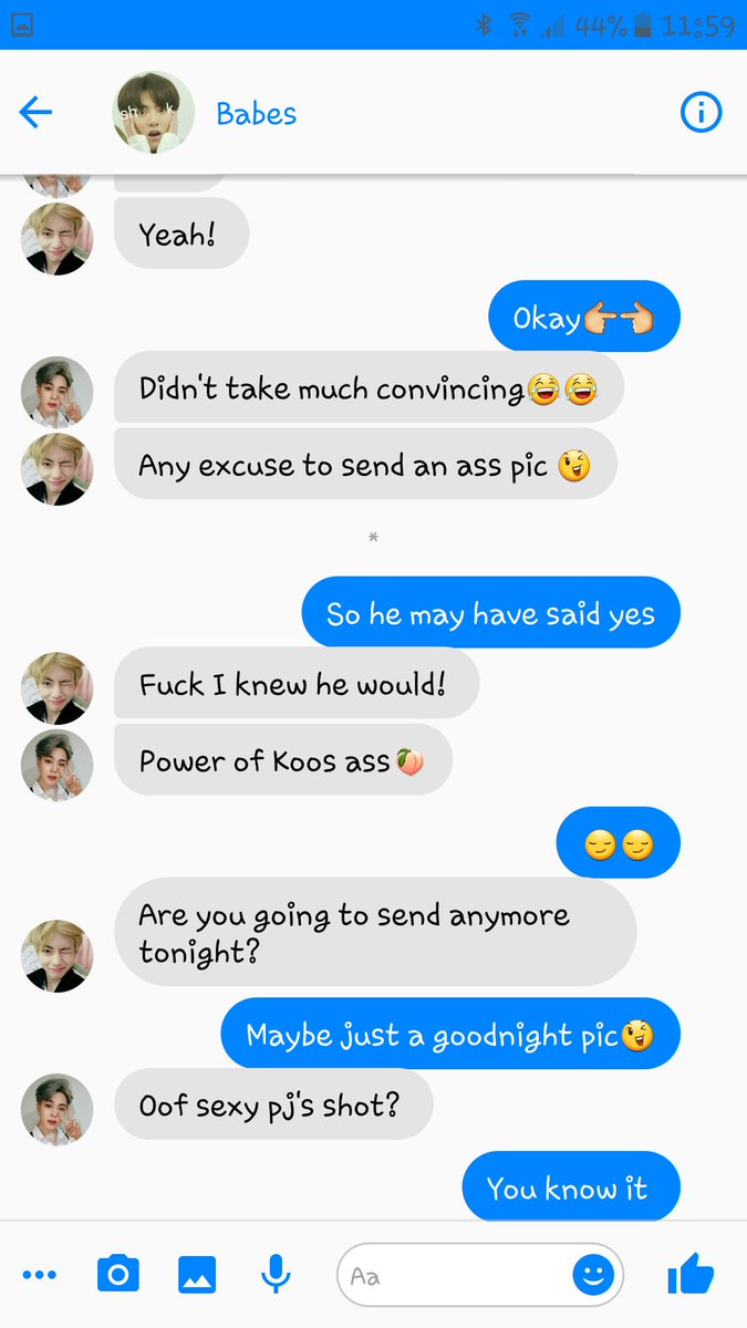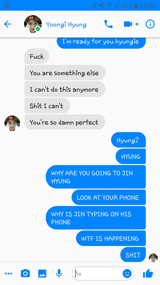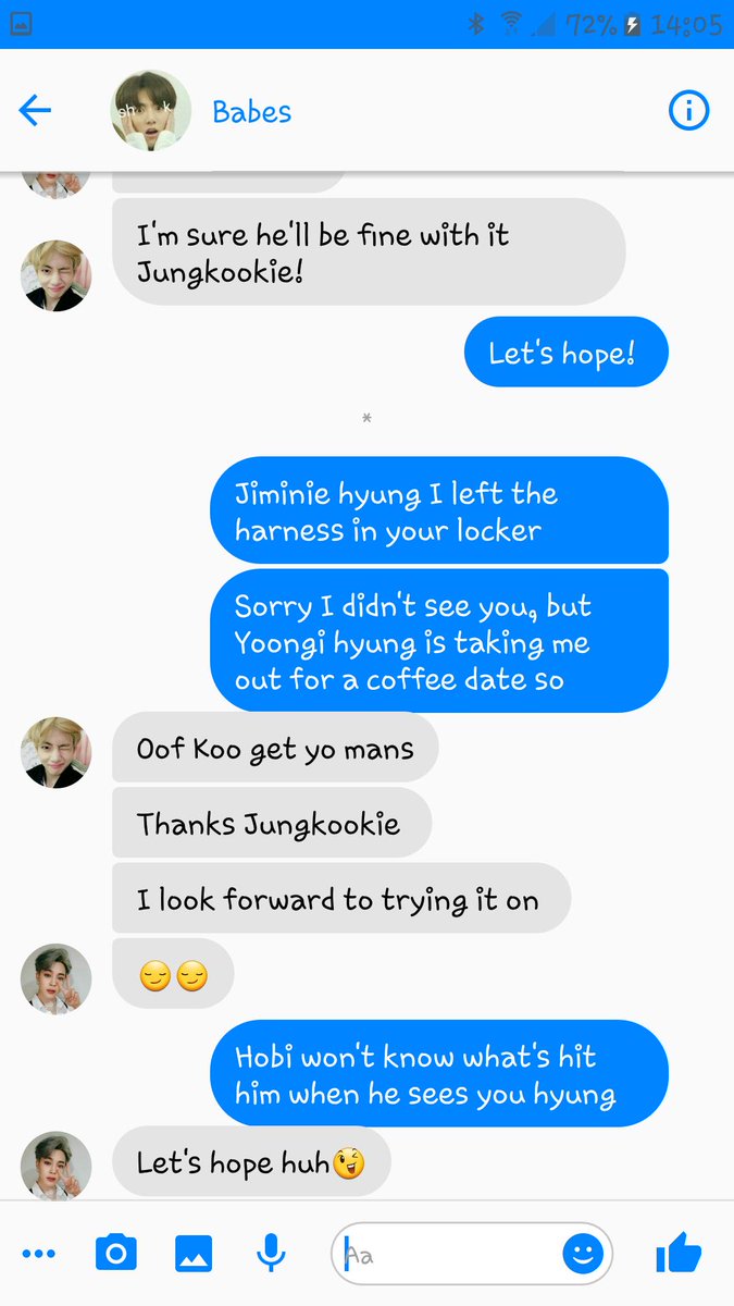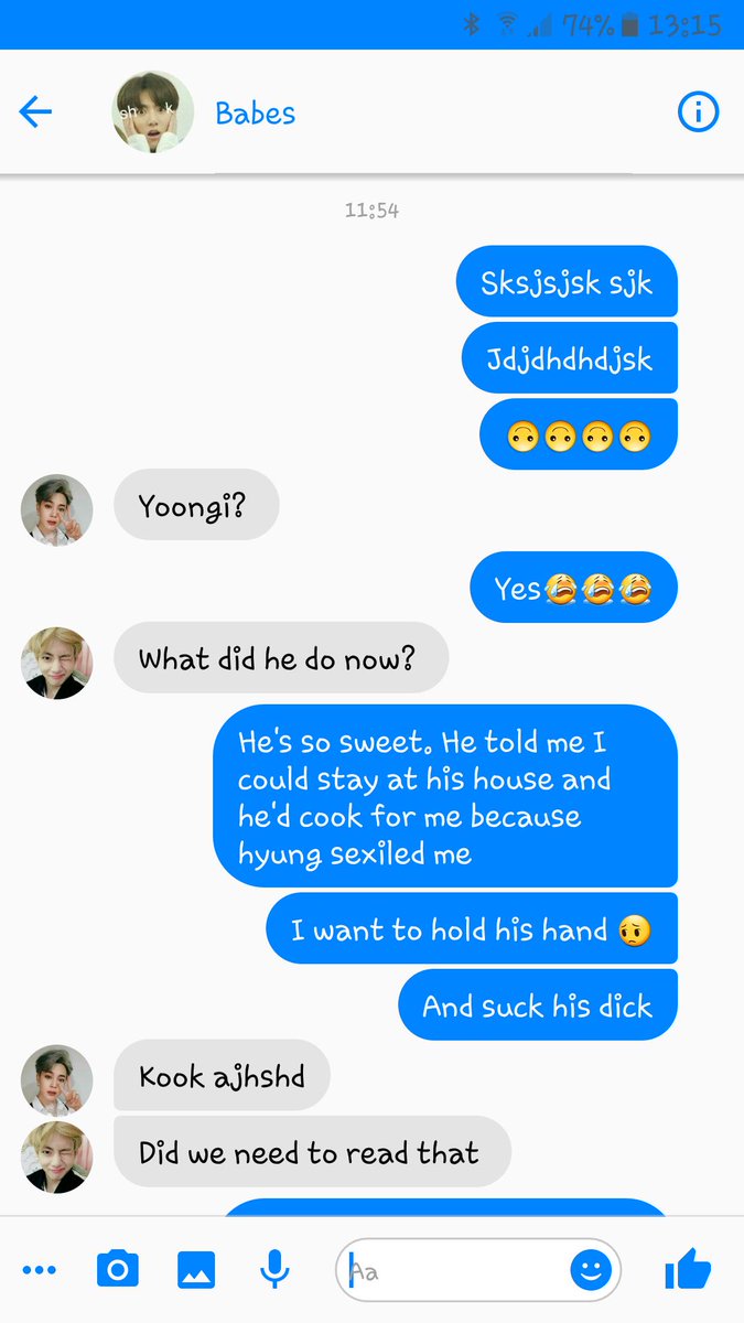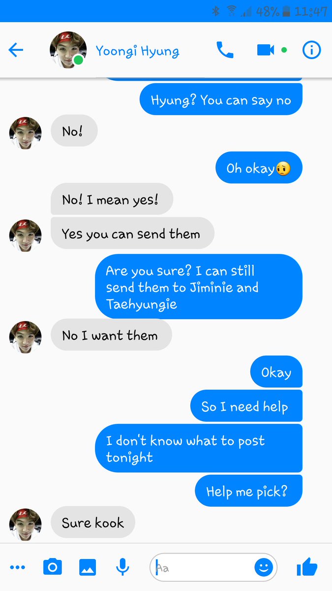 Jungkook likes to send Yoongi, his brothers best friend, photos that he has taken whilst out on his travels around town. One day however he slips up and sends something meant for his NSFW account.