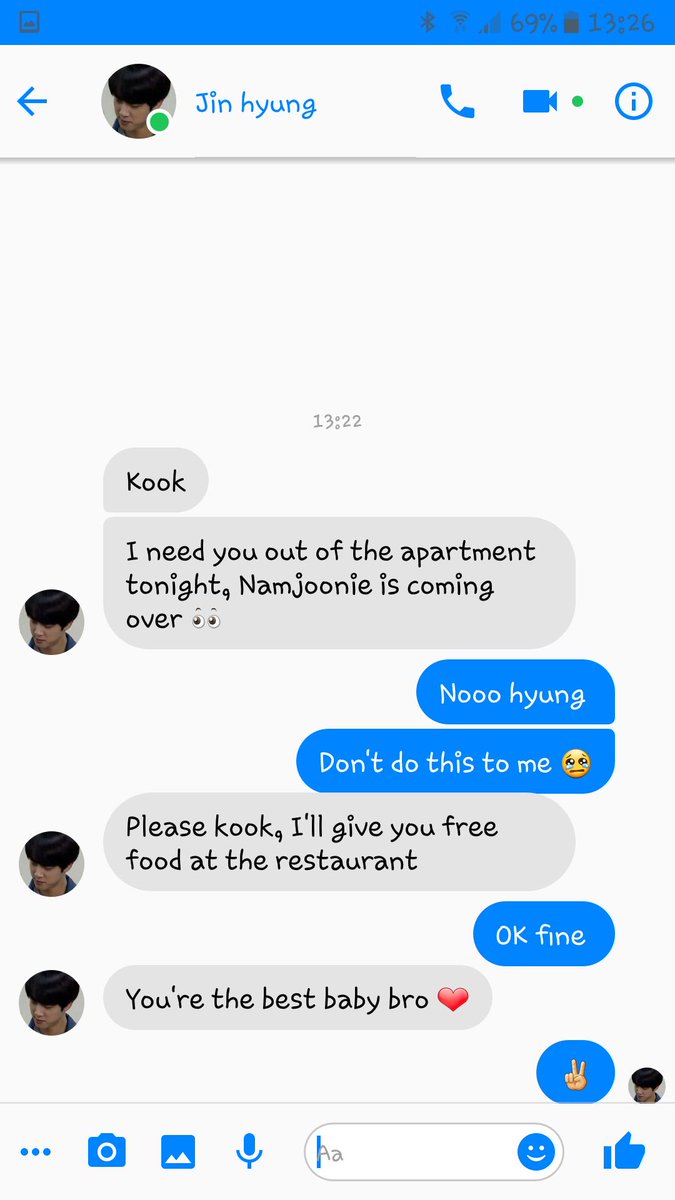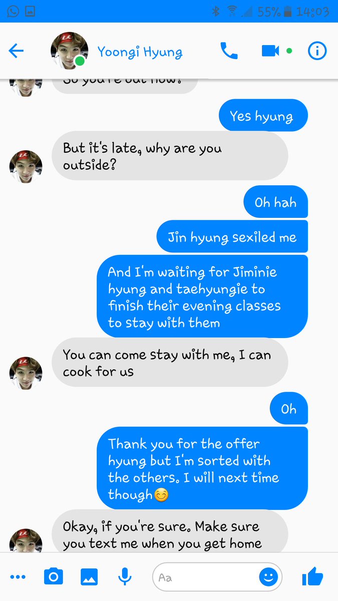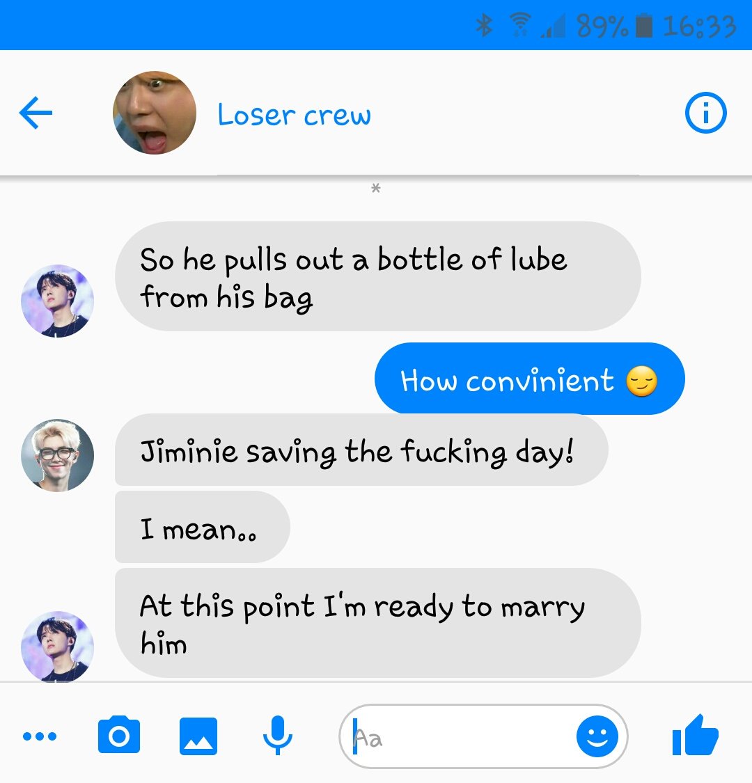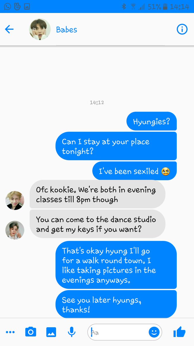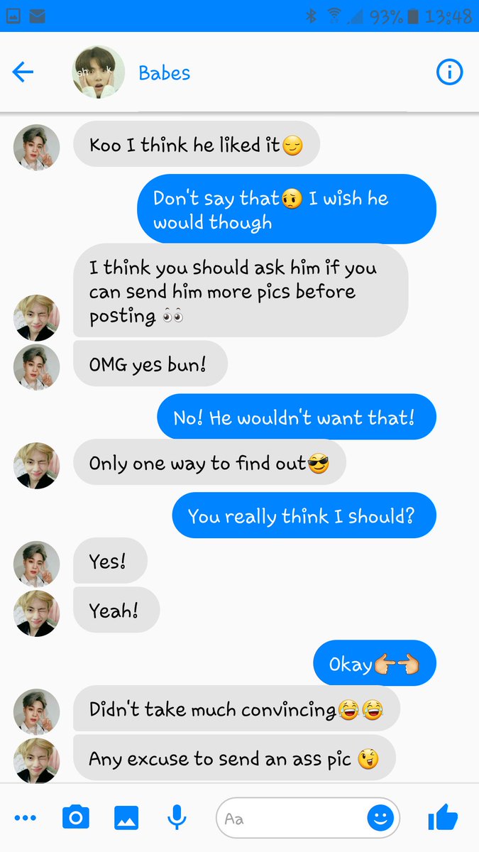 Jungkook likes to send Yoongi, his brothers best friend, photos that he has taken whilst out on his travels around town. One day however he slips up and sends something meant for his NSFW account.