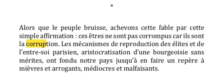 associées bien sûr à des scandales sexuels, et contre laquelle se soulèverait le peuple sain. Aucune analyse structurale.