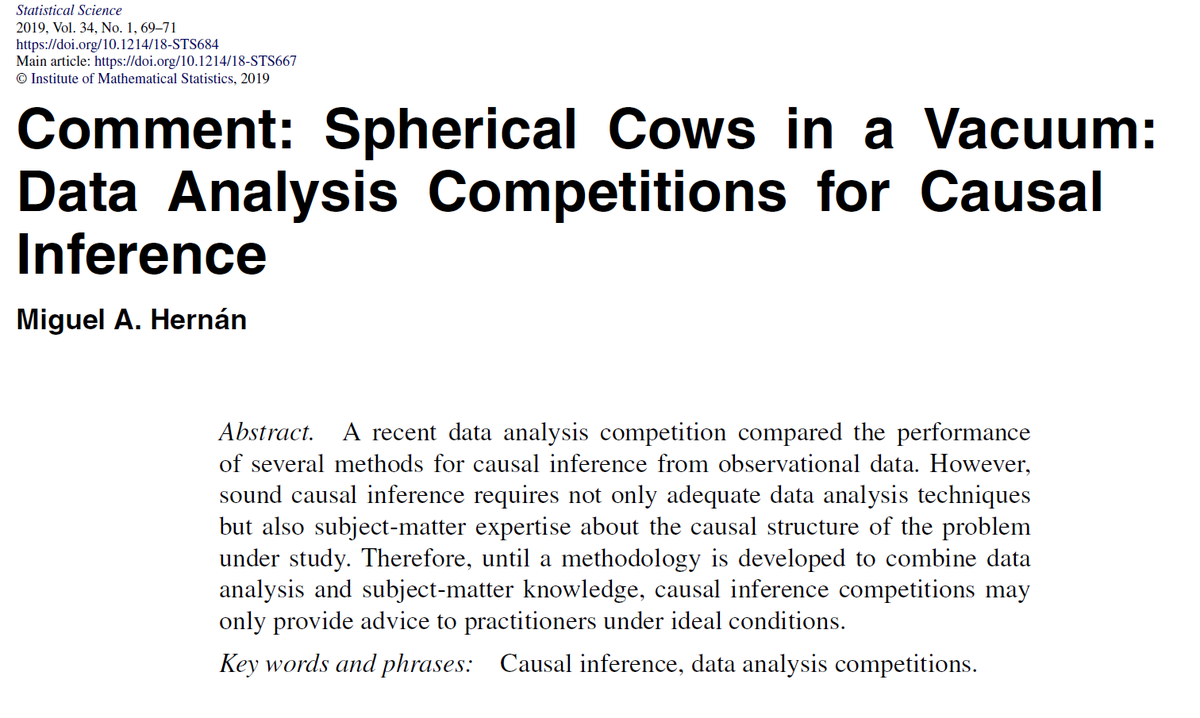 Researchers who turn to #causalinference competitions for practical advice are like the farmer who asked the local university for help to increase his cows' milk production...