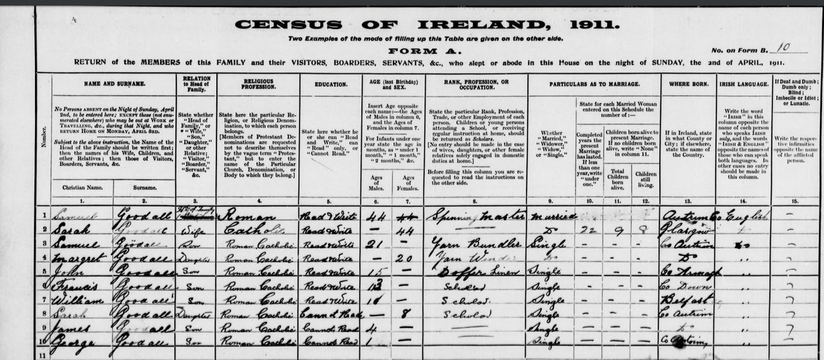 Also know all of my family were working in the textile trade and even the house and street they lived in (all ten of them, Irish catholic, natch). Think I'll be making a visit to Whiteabbey in County Antrim soon.