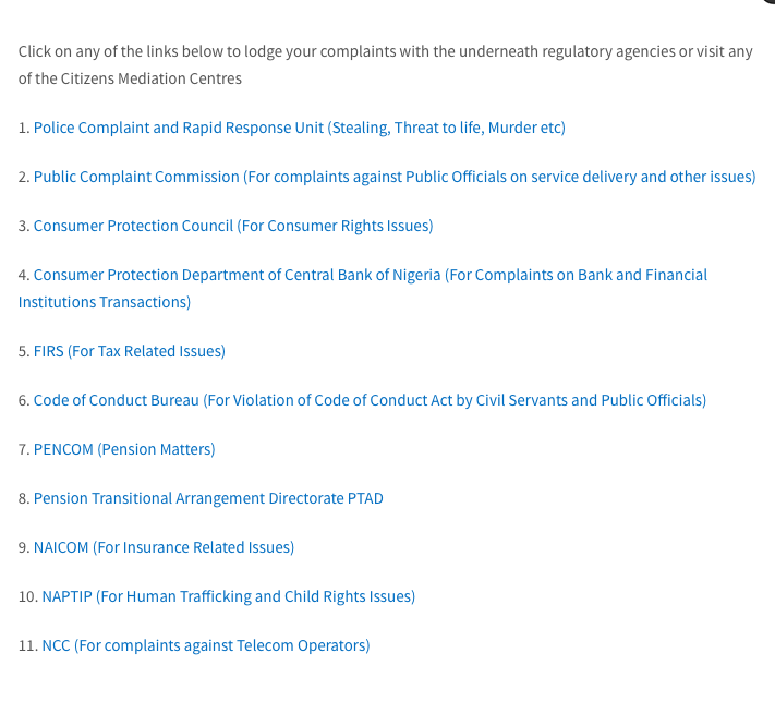 The links to the attached govt. regulatory agencies have been connected to the page and a petitioner could lodge his/her complaints on these sites with a click. As such, cases related to bank transactions could be sent to CBN. #IntegrityWednesdays#DoTheRightThing#IntegrityPays