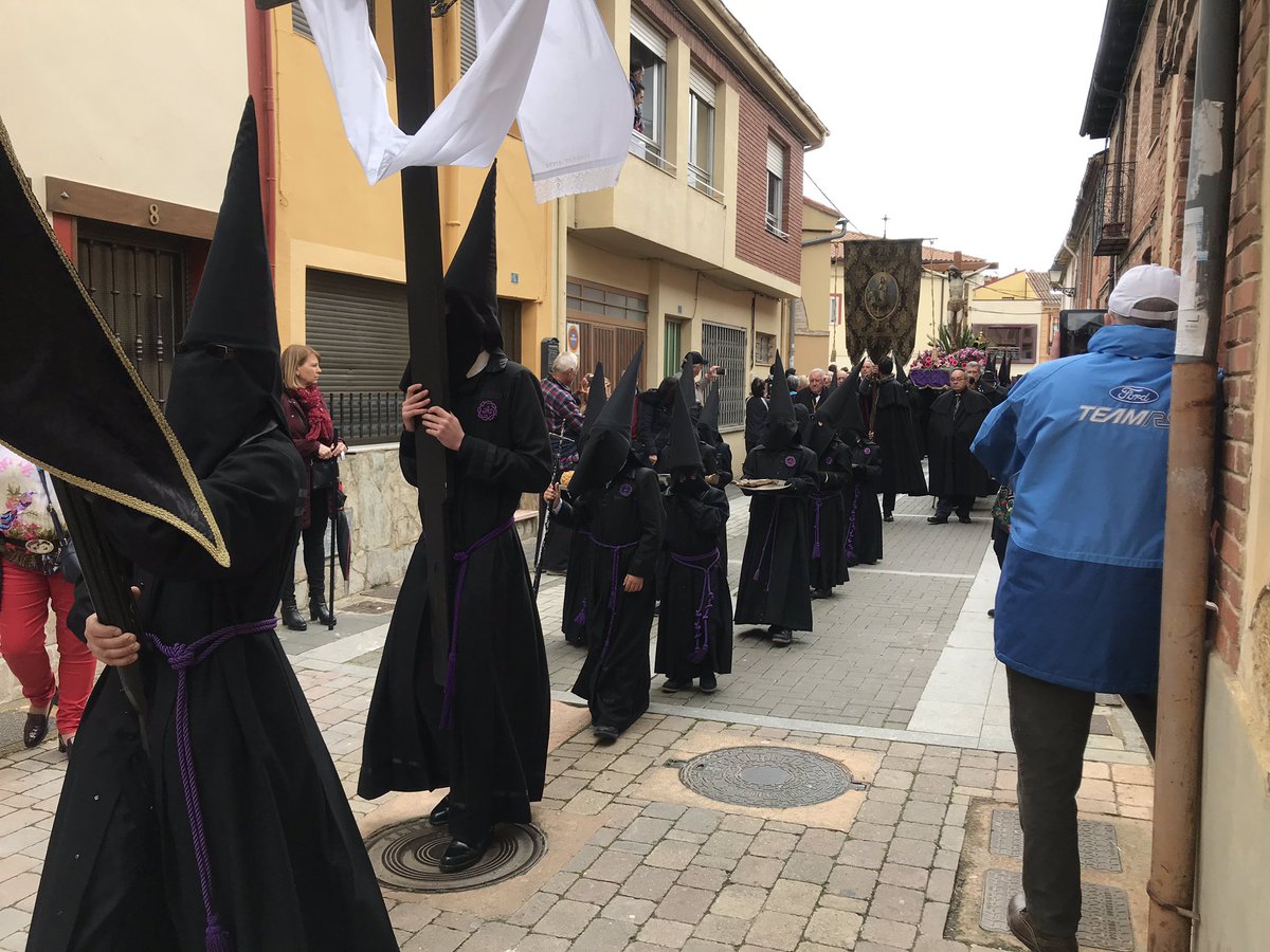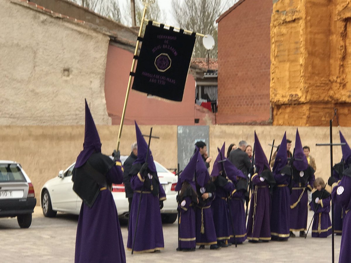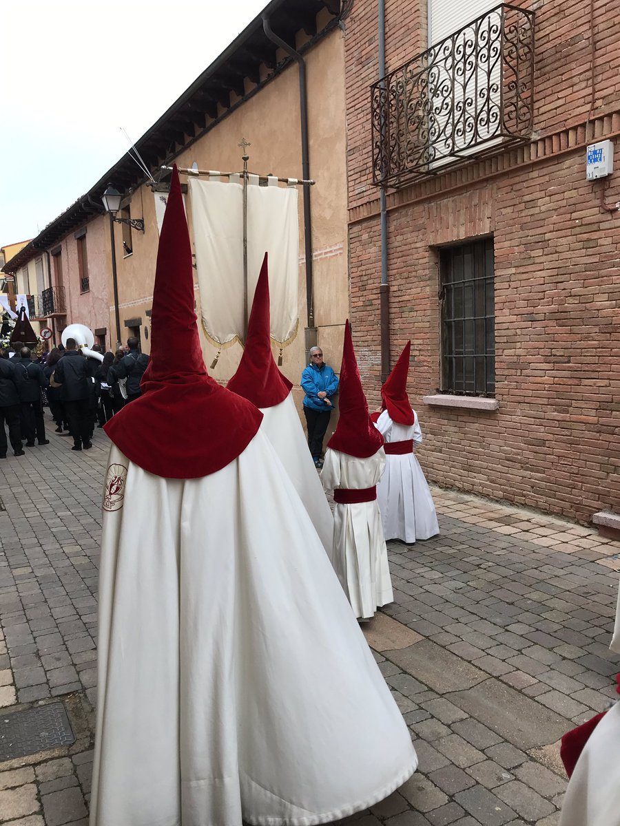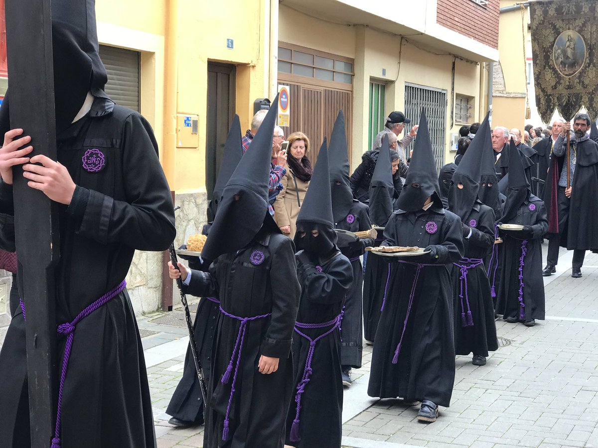 One of the old men is teasing the young boys by checking who is who under the hoods.