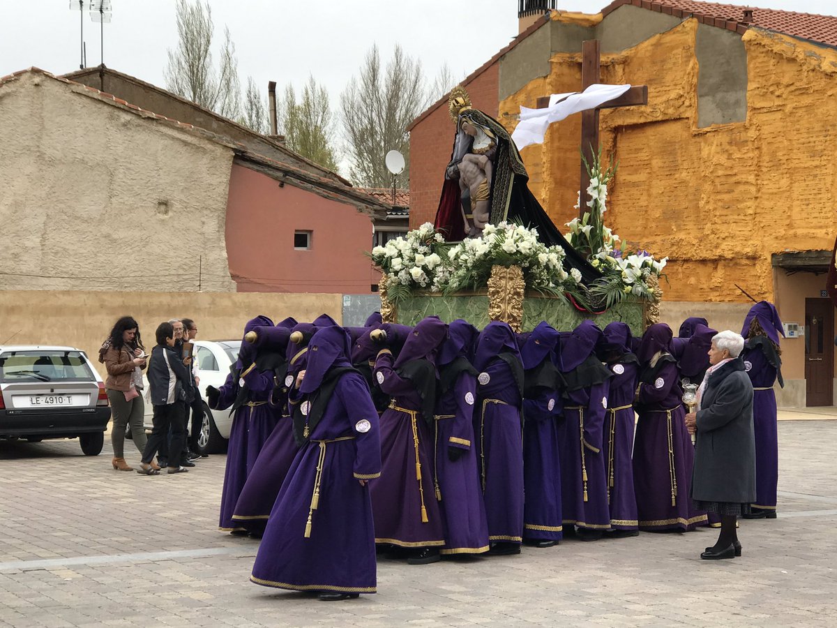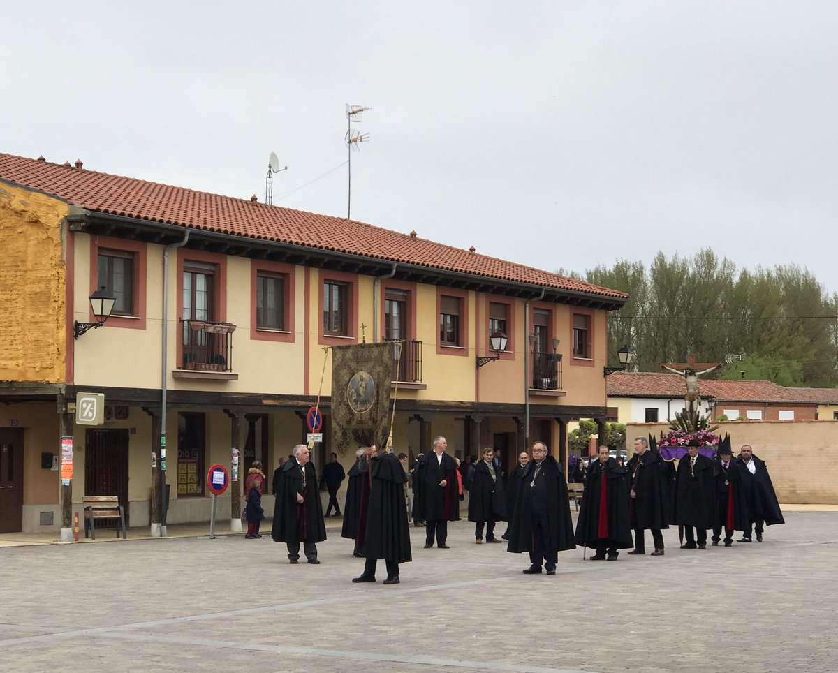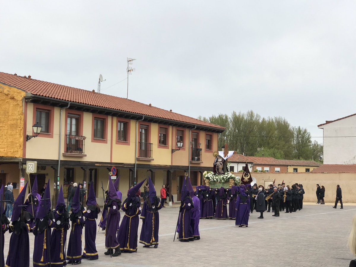 One of the old men is teasing the young boys by checking who is who under the hoods.