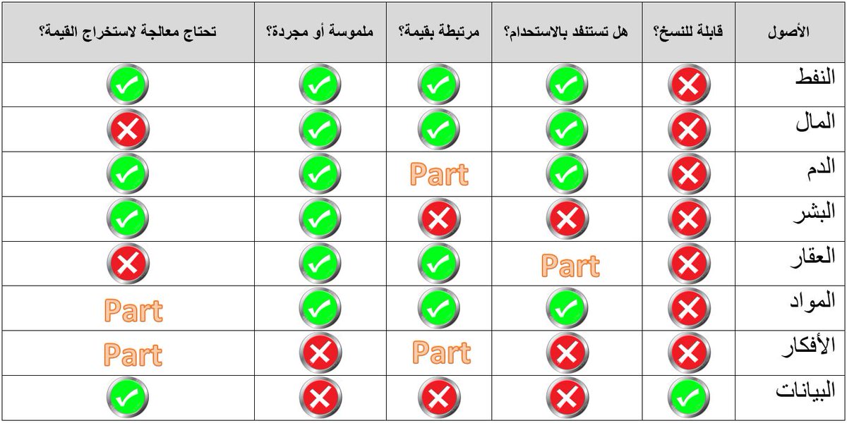 ( النفط، المال، الدم، البشر، العقار، المواد، الأفكار)