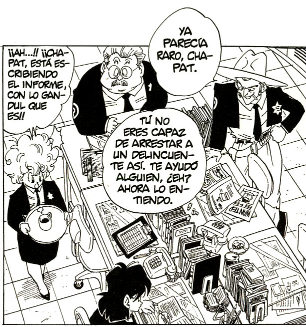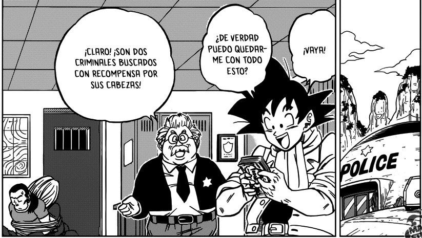 La comisaría a la que Goku lleva a unos maleantes en Dragon Ball Super (manga) es la misma en la que trabaja Chapat, el humano en el que se oculta Giola (verdadera identidad de Cashman).