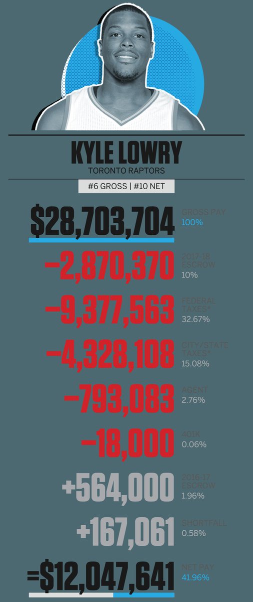 ➡️ 𝗜𝗺𝗽𝘂𝗲𝘀𝘁𝗼𝘀 𝗙𝗲𝗱𝗲𝗿𝗮𝗹𝗲𝘀. Del 37% sobre el salario bruto. Es igual para todos los jugadores de la NBA, con la excepción de los jugadores residentes en Canadá (Toronto Raptors), que pagan un 33%.