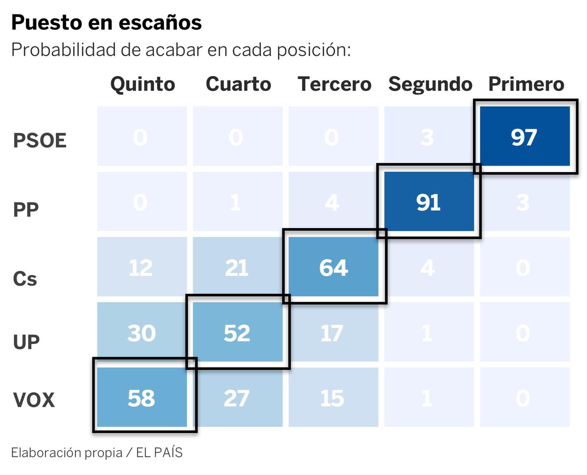6/ Y lo mismo pasa con las posiciones. Los cinco grandes partidos cayeron en el puesto más probable: PSOE, PP, Cs, UP y VOX:
