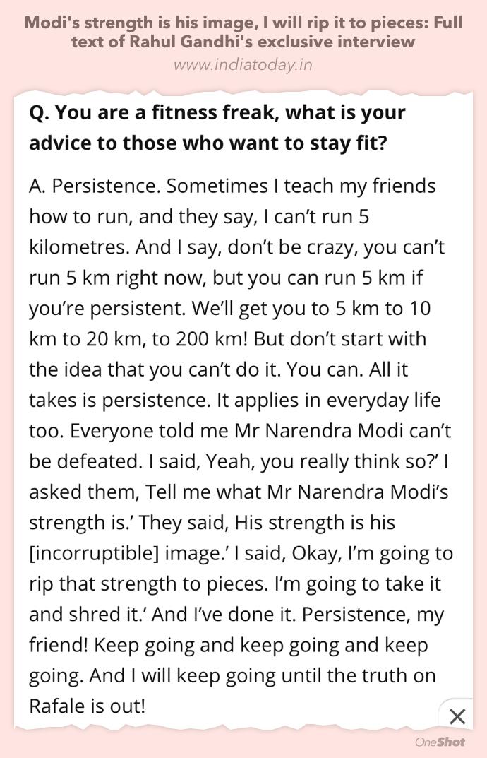 "Modi's strength is his image ,I will rip it to pieces " Rahul Gandhi in his interview with Cong channel NDTV.
