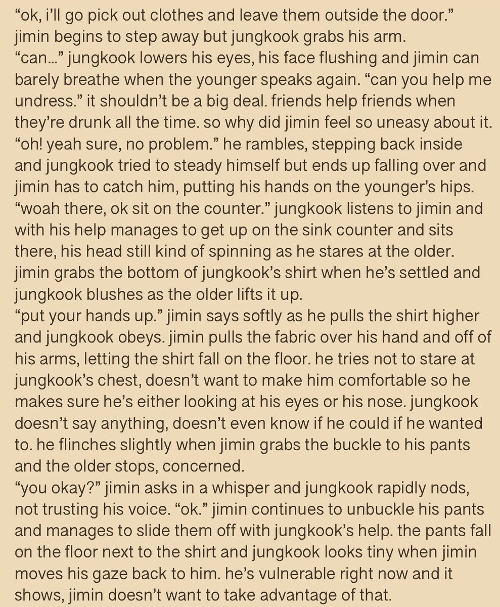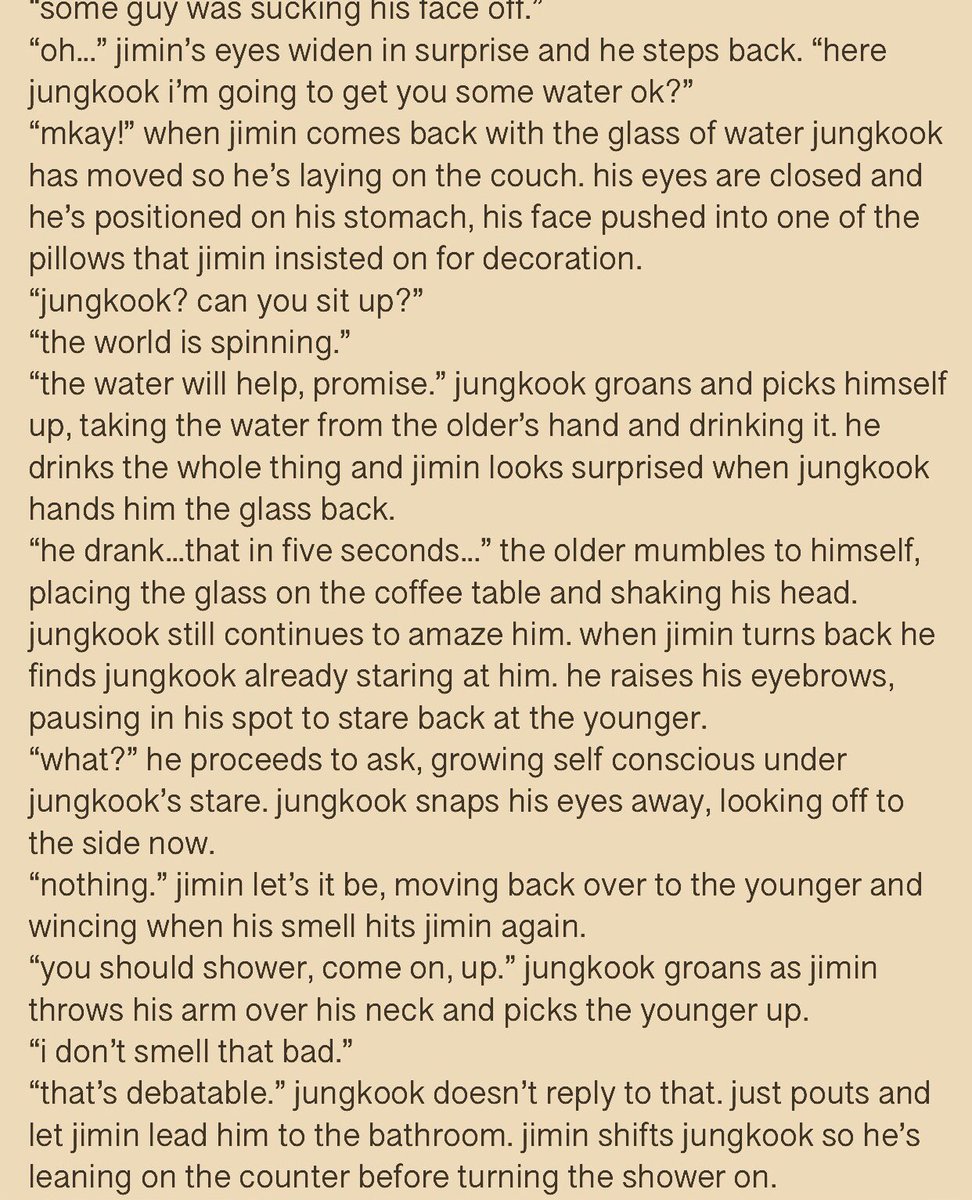 [ 44 ] the first time jimin took care of jungkook pt. 2