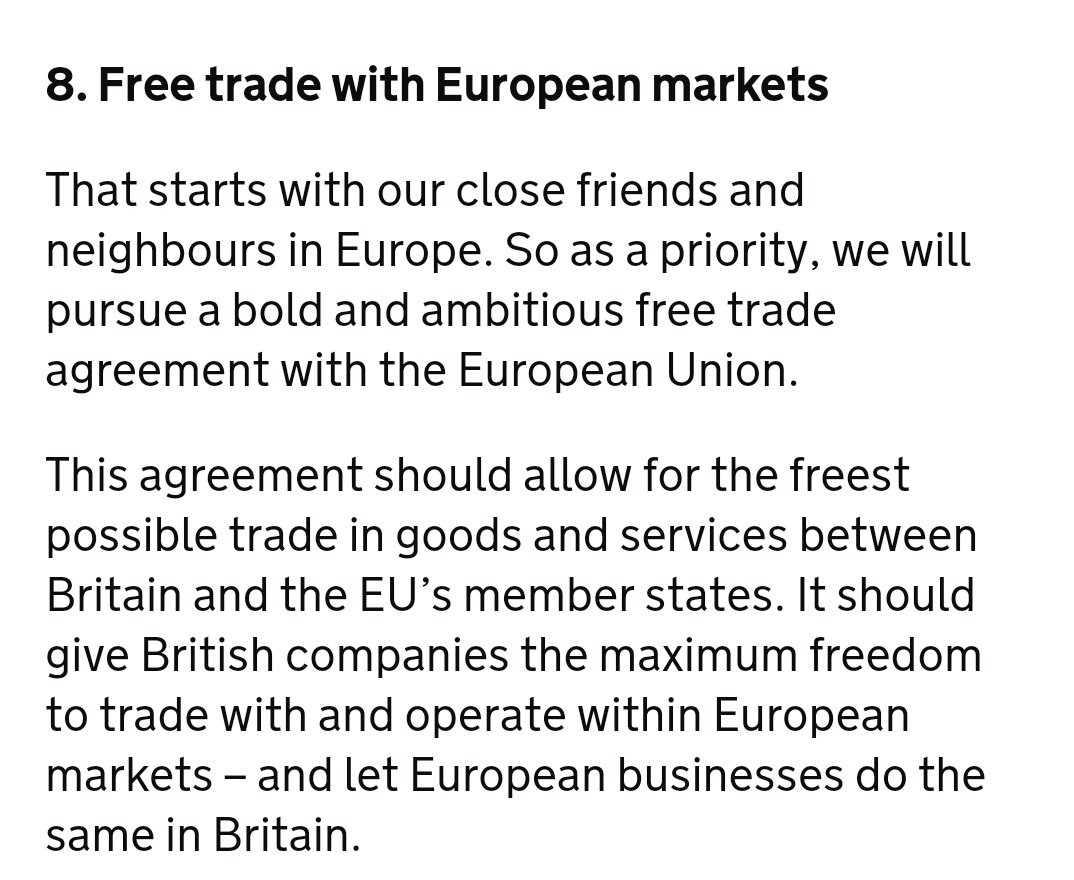 5/ Although Farage claims twice that May did not ask for a free trade agreement, here's her Lancaster House speech which shows that his claims are false. The government subsequently agreed to a transition period, but its long-term objectives haven't changed.