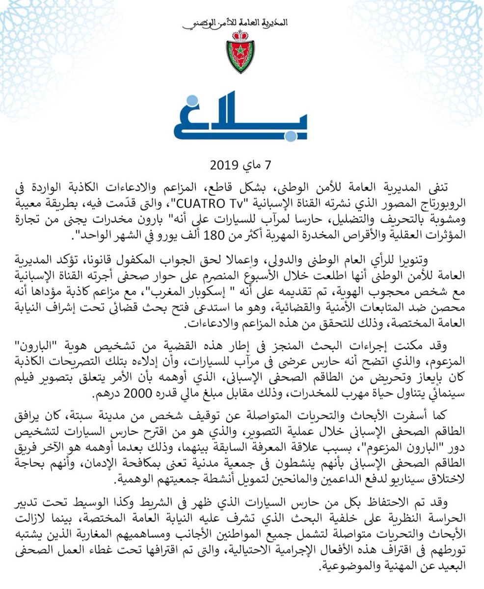 Por qué la @DGSN_MAROC (Policía Nacional marroquí) reaccionó furiosamente con un comunicado contra la tv española @cuatro después del reportaje sobre el "Pablo Escobar marroquí"?