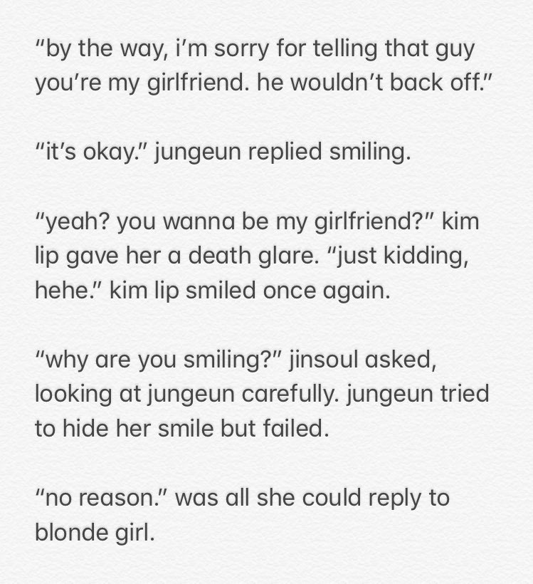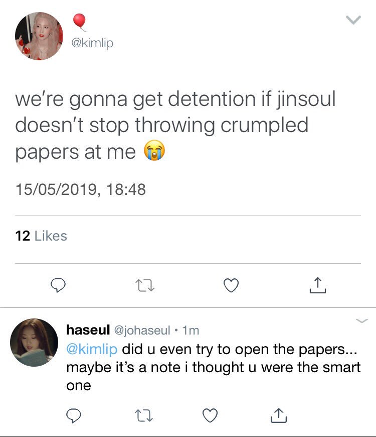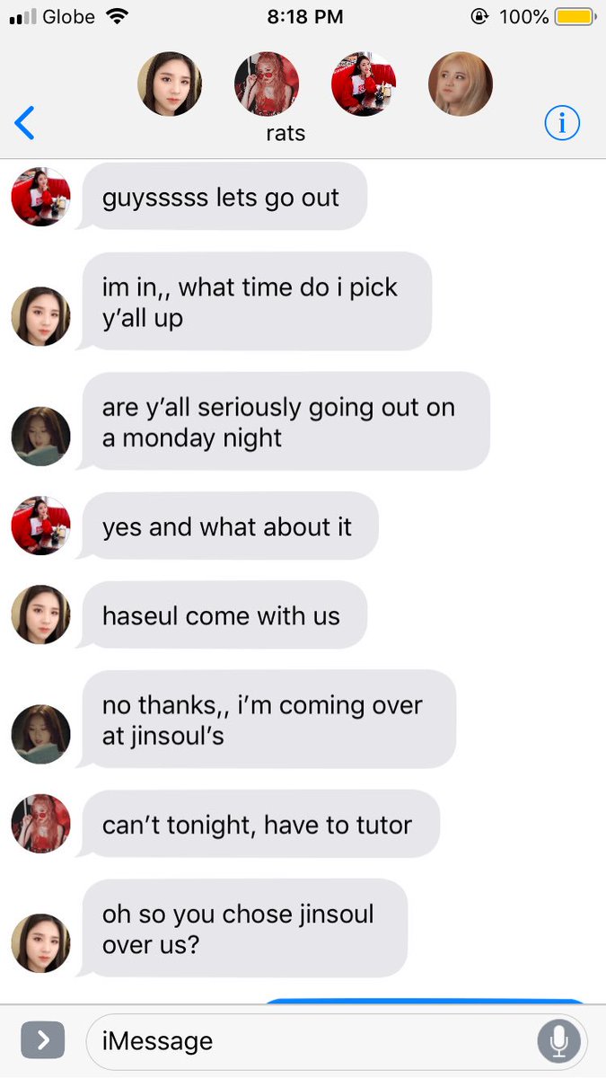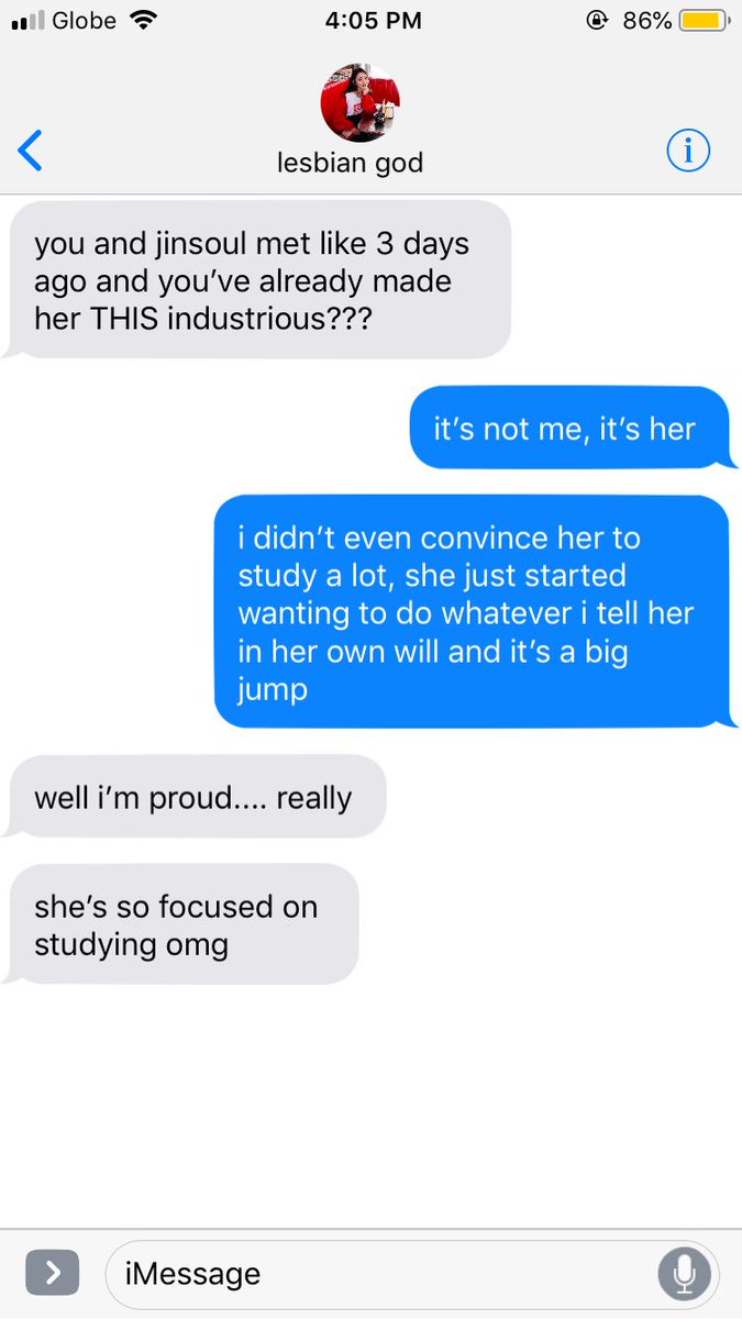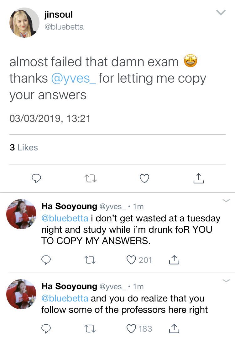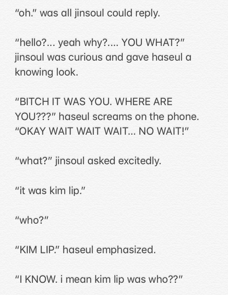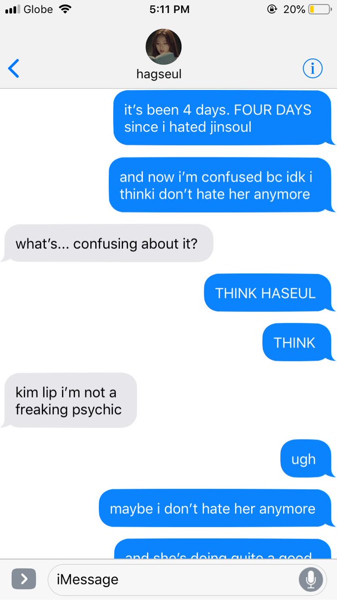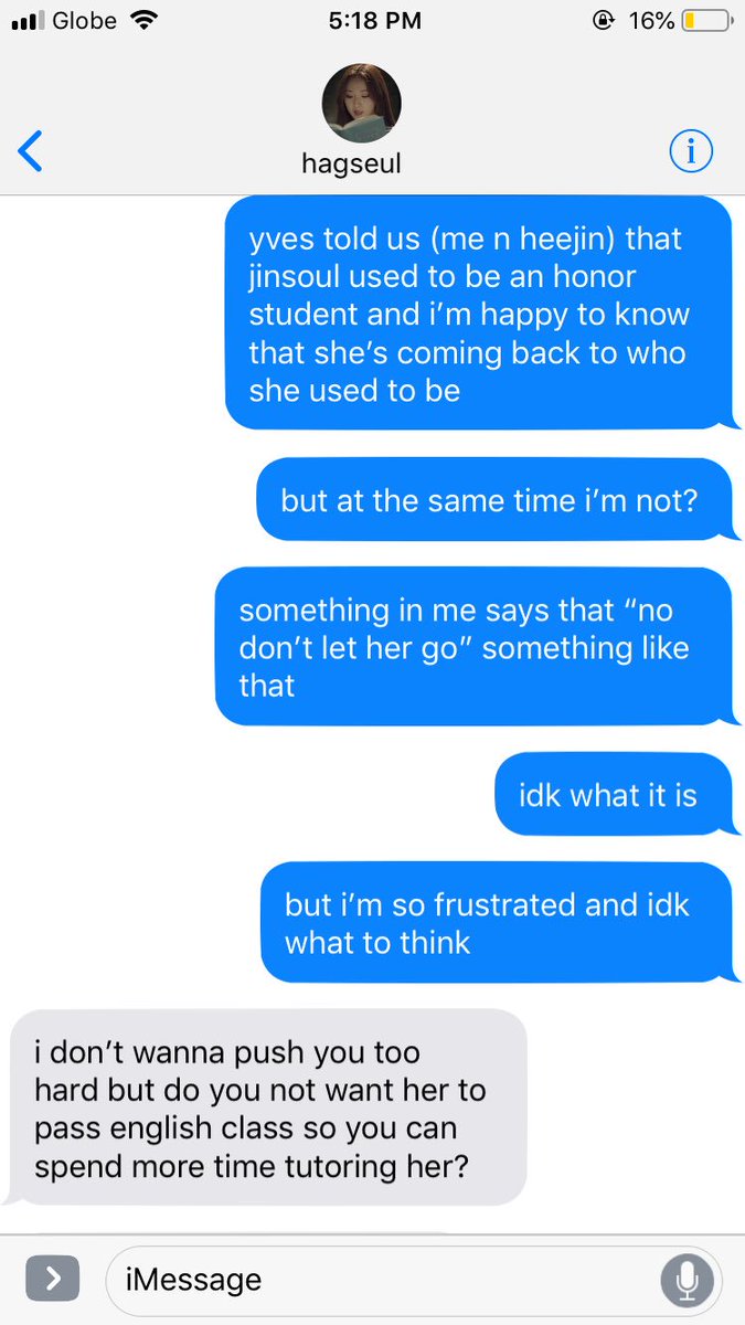 wherein kim lip is a top student in Seoul University but still manages to go on parties with yves, while jinsoul struggles to pass her english class and is in need of a tutor.