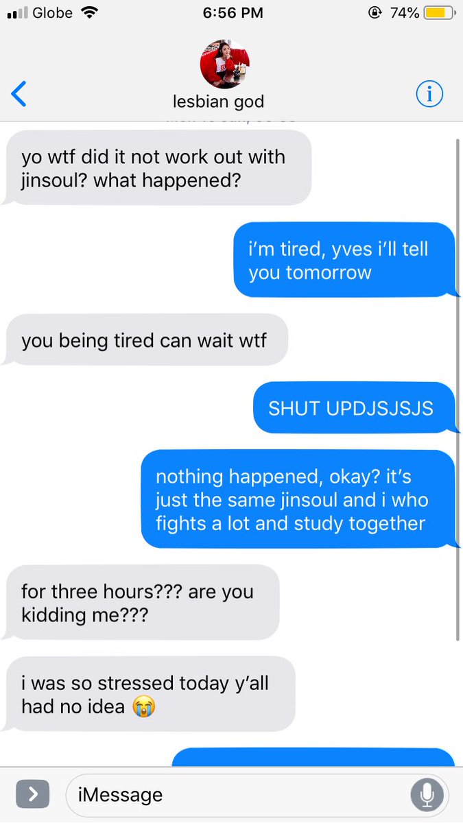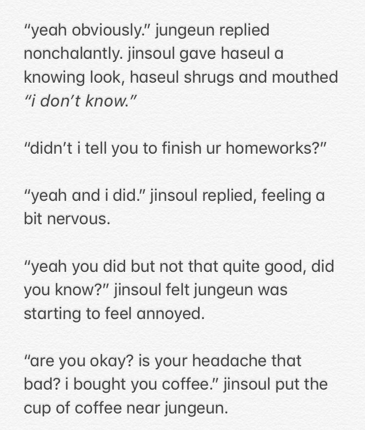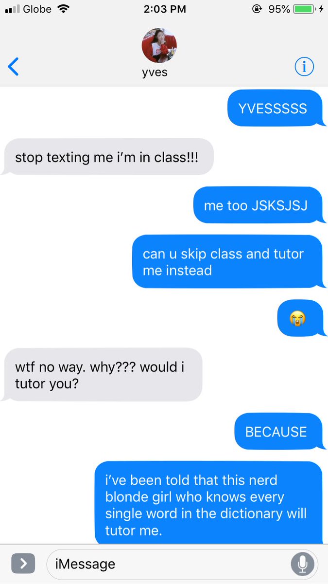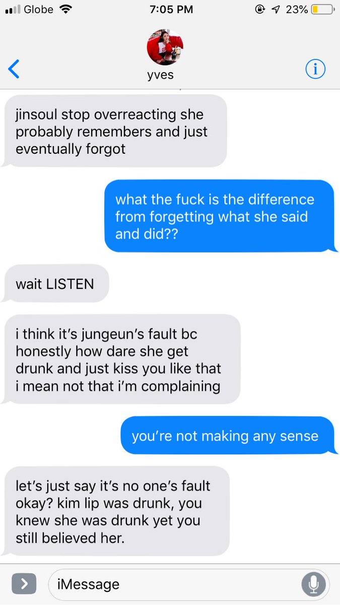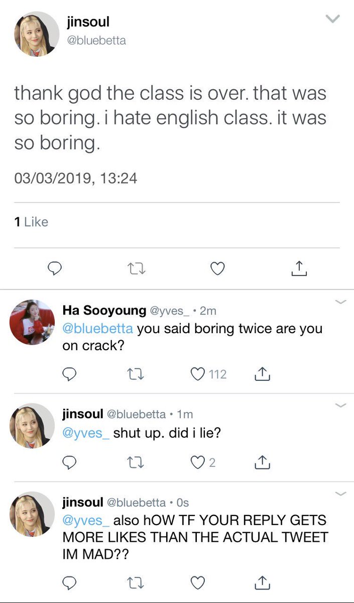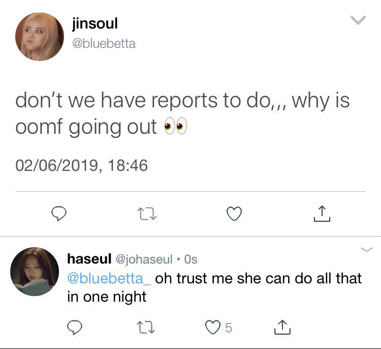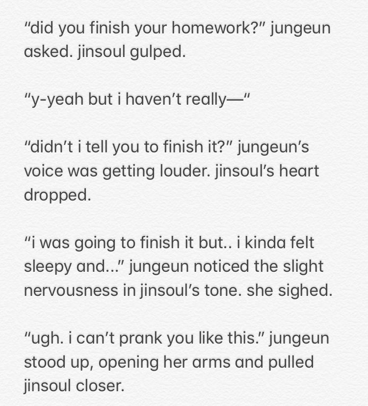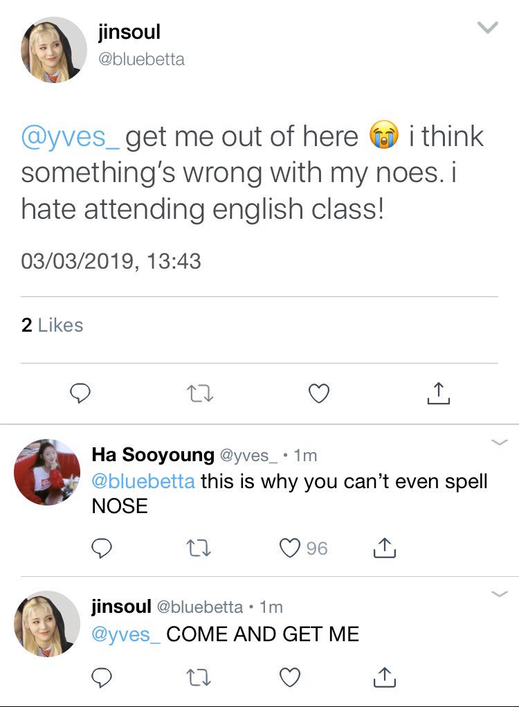 wherein kim lip is a top student in Seoul University but still manages to go on parties with yves, while jinsoul struggles to pass her english class and is in need of a tutor.