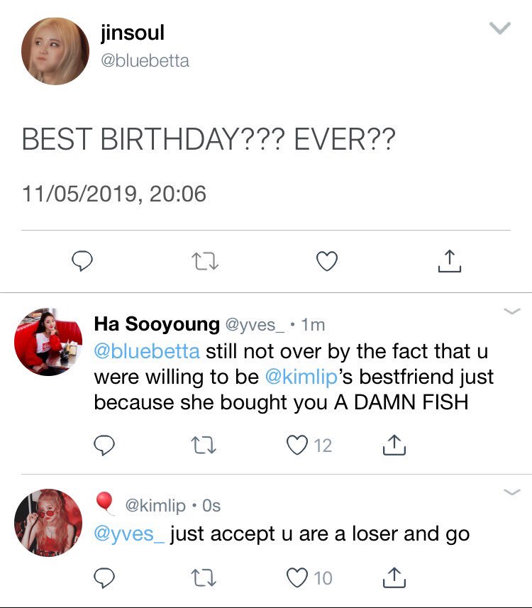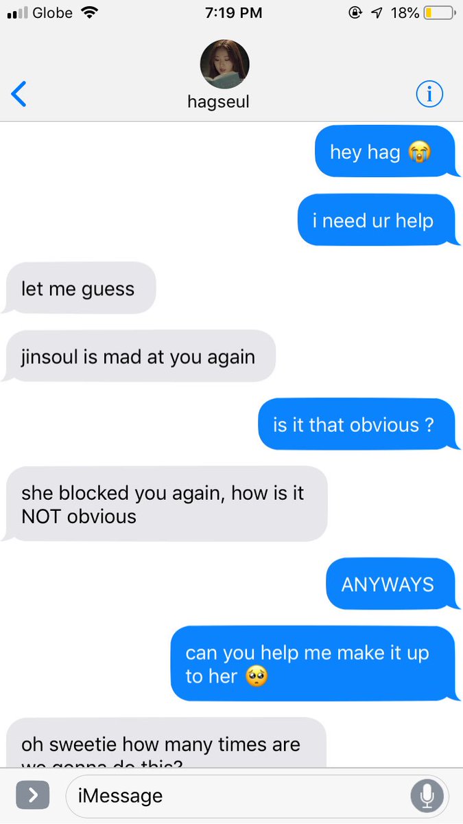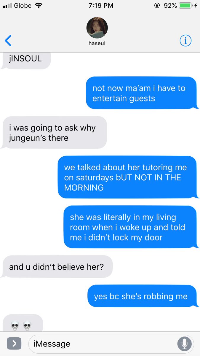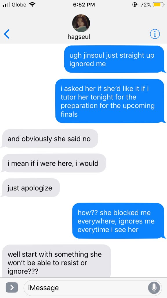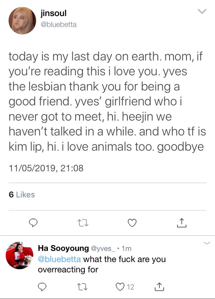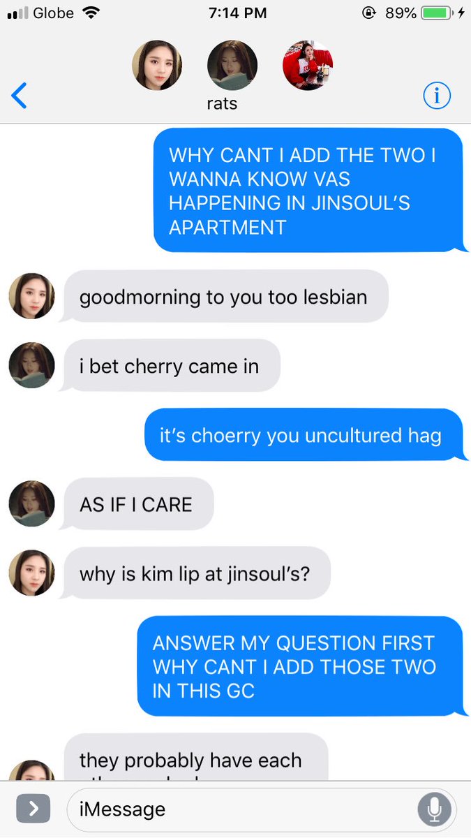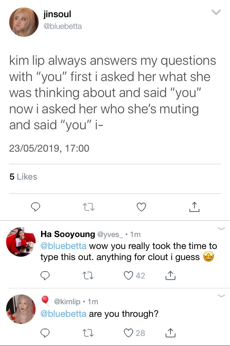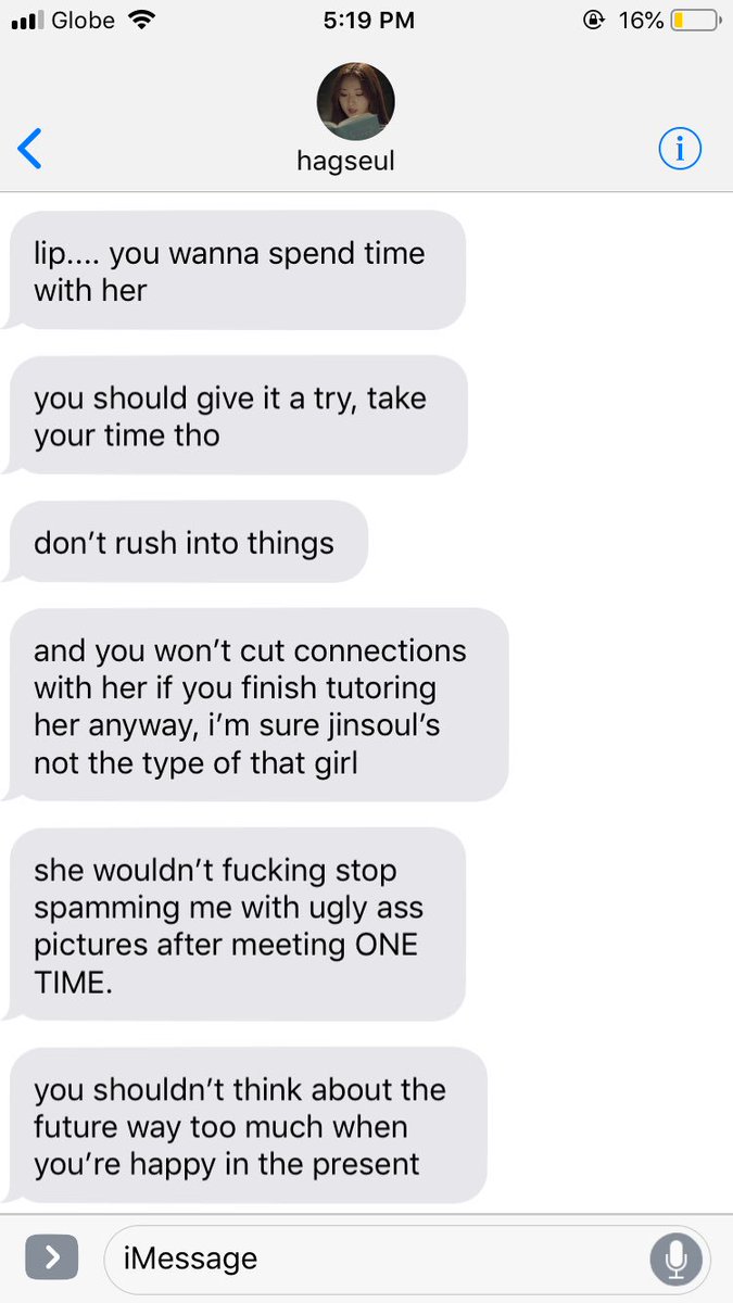 wherein kim lip is a top student in Seoul University but still manages to go on parties with yves, while jinsoul struggles to pass her english class and is in need of a tutor.