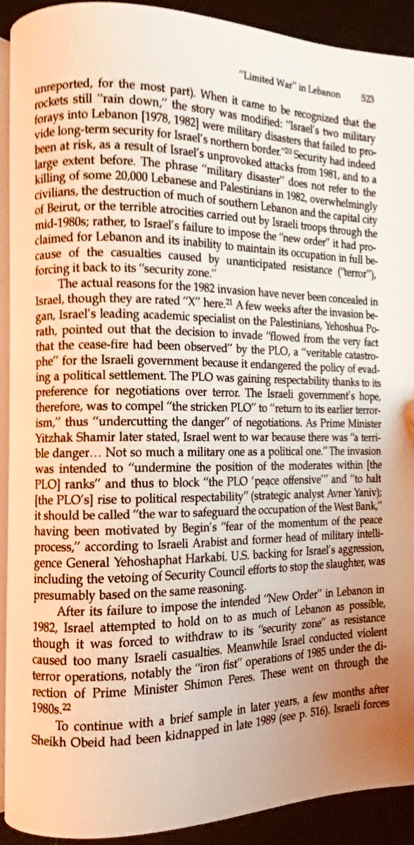 Yitzhak Shamir openly admitted that the war was launched because the PLO posed “a terrible danger...Not so much a military one as a political one.”