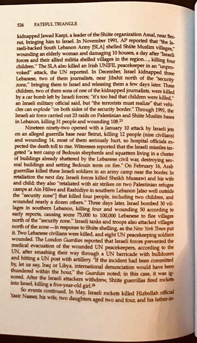 An Israeli car bomb killed three children in Lebanon in 1991. “[I]t’s too bad that children were killed,” an Israeli military official said, but “the terrorists must realise” that vehicles can explode “on both sides of the security border.”
