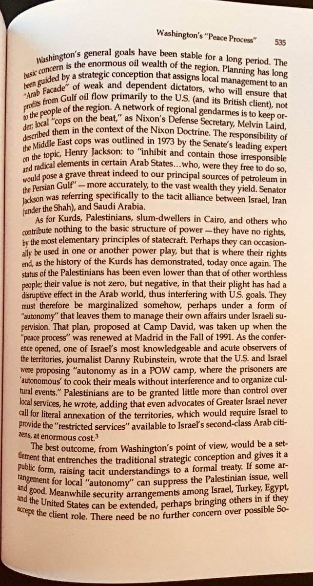 In 1973 a US planner noted that Saudi Arabia and Israel’s role is to “inhibit and contain those irresponsible and radical elements in certain Arab States...who, were they free to do so, would pose a grave threat indeed to our principal sources of petroleum in the Persian Gulf”.