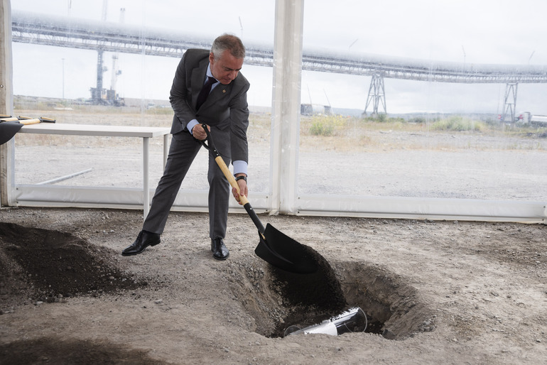 Poco antes, Urkullu había colocado la primera piedra del Hub de Descarbonización de Repsol.
