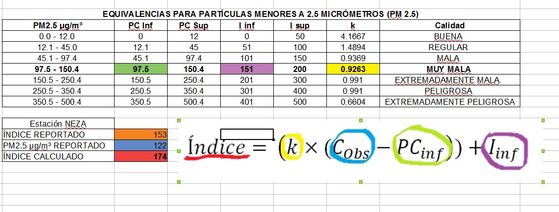 e indica los procedimientos para calcular los índices de los diferentes contaminantes, así: