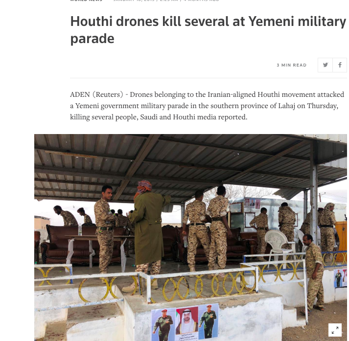 5. #Houthis are increasing their use of drones, earlier this year they launched a drone into a military parade in al-Anad South #Yemen causing significant casualties & another one was shot into Abha, #KSA. #Houthis' drones are reaching further every time;