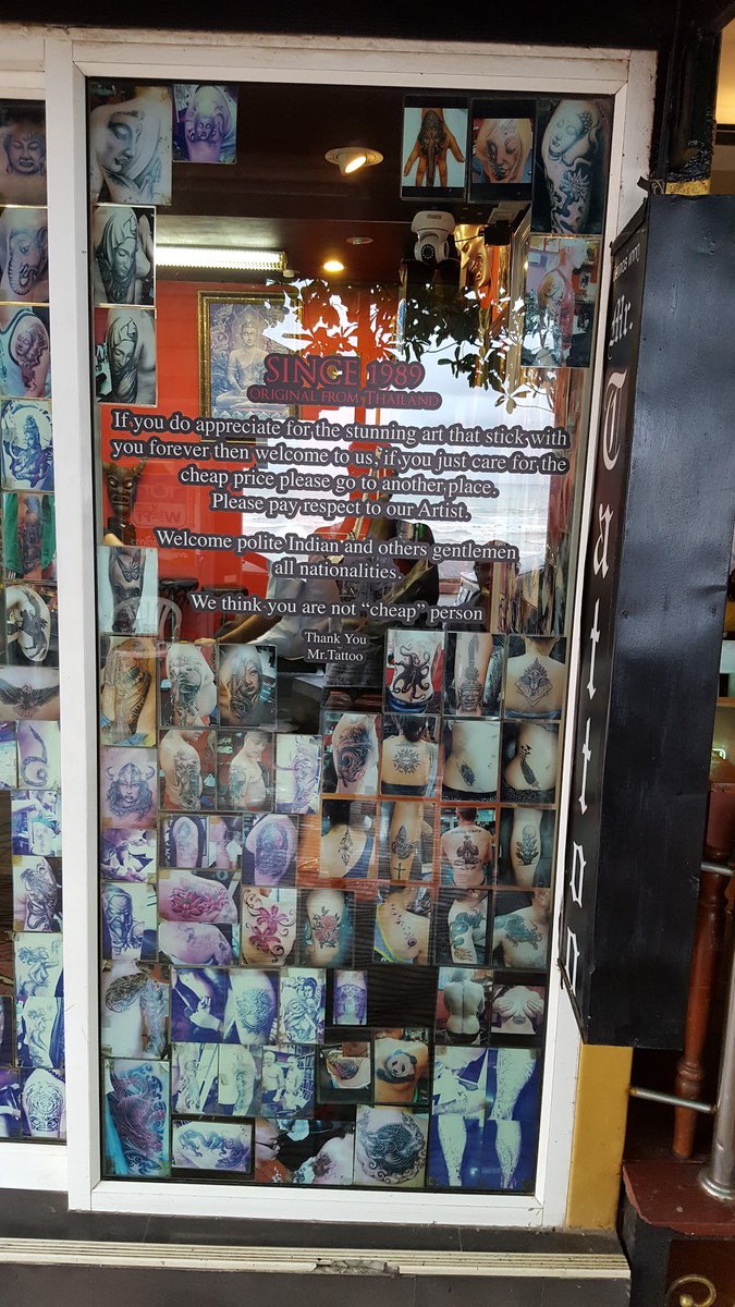 I did a double-take at "Welcome polite Indian". OK Mr. Tattoo