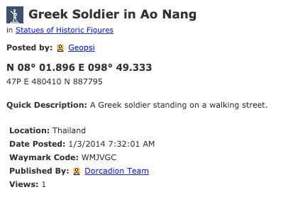Here's something I spotted that I can't find any explanation for – what appears to be a statue of a Greek (?) soldier in Ao Nang street. The inscription simply reads "I was there @ Walking Street / Ao Nang / Krabi". Did... somebody just like Greek soldiers?