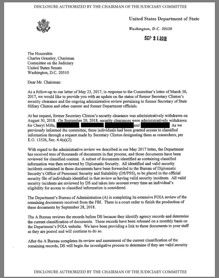 • HRC Staff had access as ‘researchers’ - Mills + 4 that were redacted