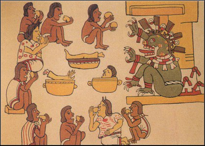 Los aztecas, que carecían de ganado, se merendaban al prójimo tras matarlo ritualmente, ya fuera asado lentamente en barbacoa, o guisado en exquisitos moles.