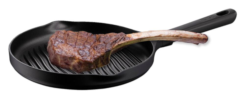 Muchos de nosotros carecemos de jardín para asar carne, y tenemos que recurrir a otra técnica: el sartén. Consíguete un sartén de hierro forjado, preferentemente con zurcos para que la carne quede con un bonito marcado.