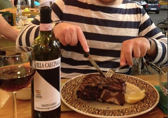 Hornéalo por espacio entre quince y veinte minutos, para que quede medio rojo. Déjalo reposar cinco minutos fuera, lejos del fuego, en el sartén. Ponle un chorrito de aceite de oliva extra virgen, y acompáñalo con un buen vino. Se llama Bistecca Fiorentina. ¡Provecho!