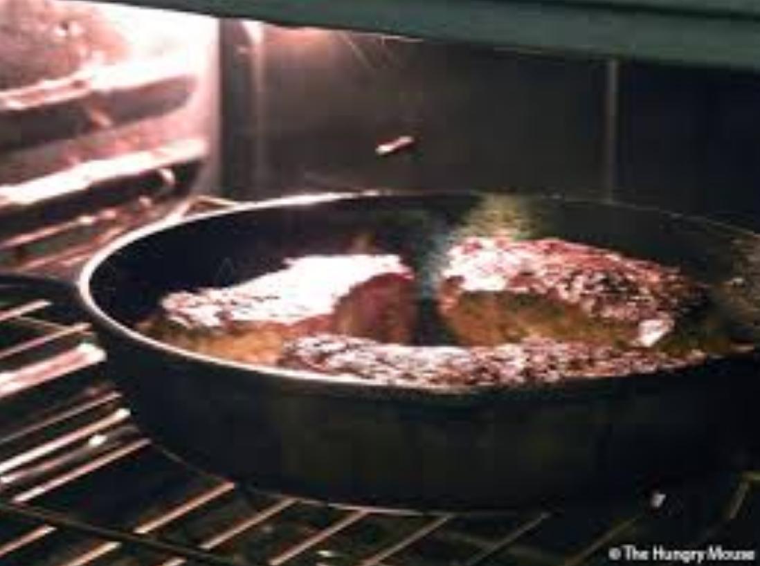 Mete el sartén al horno inmediatamente. OJO: no lo hagan con sartén de teflón; puede arruinarse y ser venenoso. Tiene que ser sartén de hierro forjado ("cast iron skillet”, por si lo compran importado).