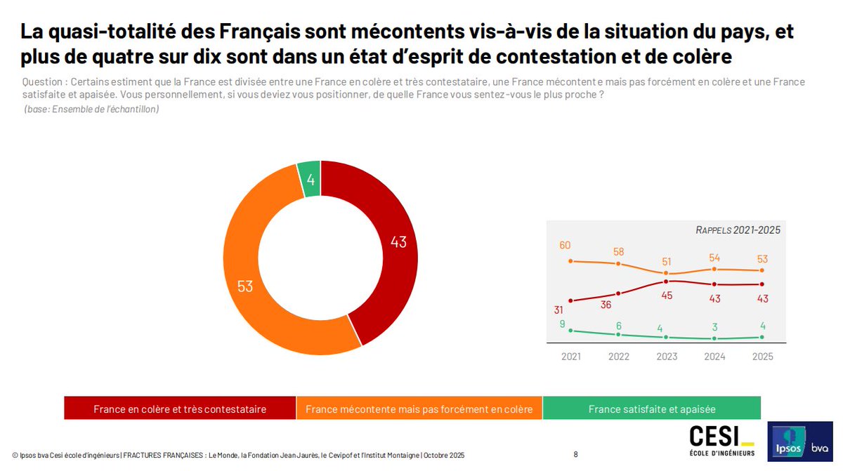 ➡️53% des Français sont mécontents mais pas en colère (73% au PS, 73% chez LR)