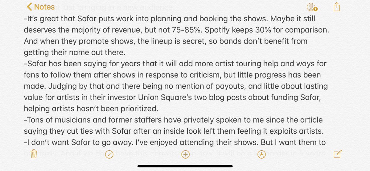 I’m glad we’re questioning Sofar’s meager payouts to musicians now before it gets too big to change. Here’s my article on it raising $25M techcrunch.com/2019/05/21/how…