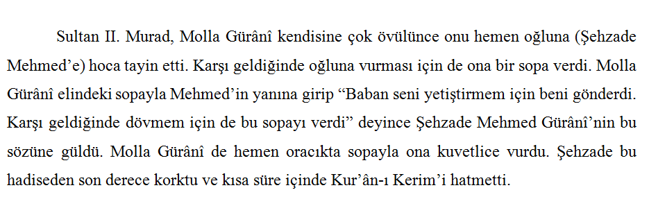 Molla Gürani Fatih Sultan Mehmed'in hem çocukluğunda hem de ikinci kez tahta geçtiği zamana kadar hep yanındaydı. Fetihten sonra da birlikteydi.