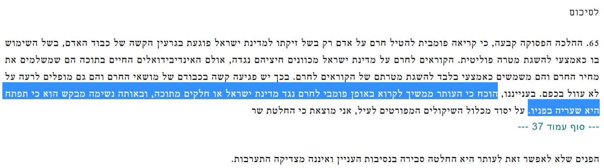 ראיתי שצייצת בפומפוזיות כי ביקורת על צו תנאי (!) נגד חוק יסוד היא איום מאפיוזי ופלישה ללשכות השופטים.