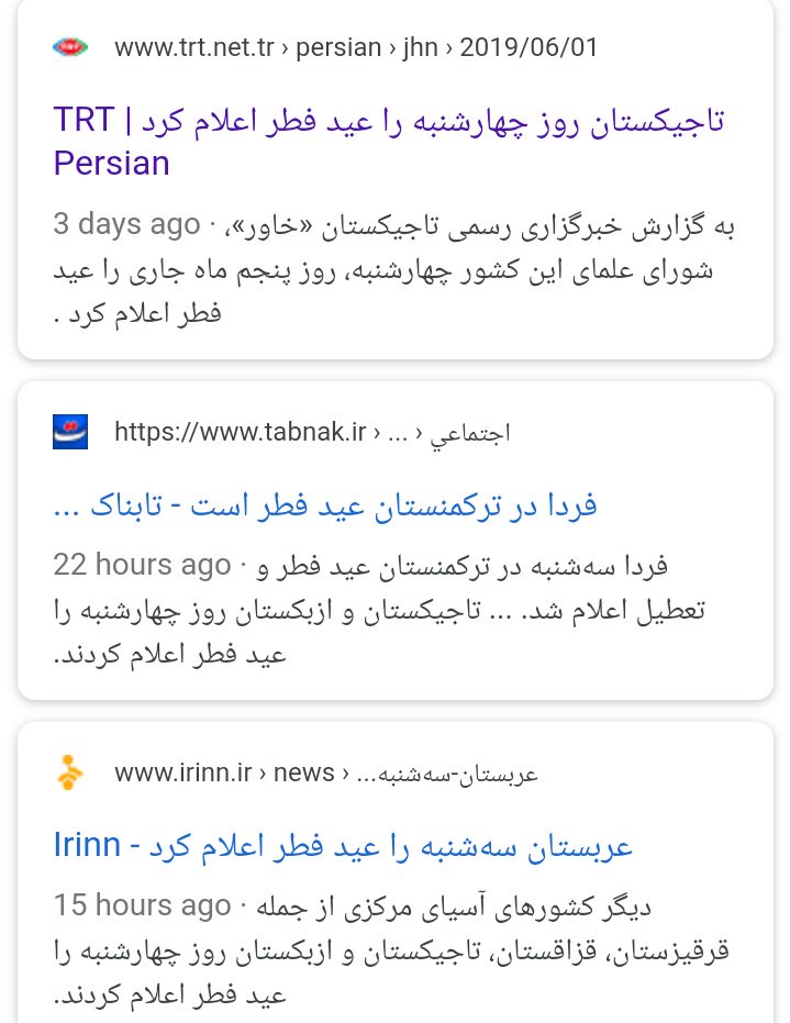🔘شبهه:چراغیراز عربستان تقریباهمه کشورهای غرب وشرق ایران امروزراعیداعلام کردند وفقط درایران اعلام نشده؟