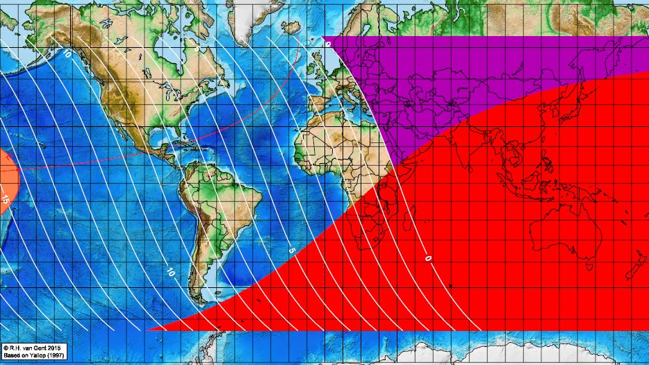 🔘خطوط Sمانند سن ماه را نشان میدهند که در ایران در حد نزدیک به صفر است و آخرین رکورد هم فکر کنم 7 ساعت بوده که آنهم بدلیل ارتفاع مناسب و .. بوده، پس در ایران و کشورهای اطراف امکان رویت با هر ابزاری حتی با بهترین رکوردهای جهان نیز صفر است.