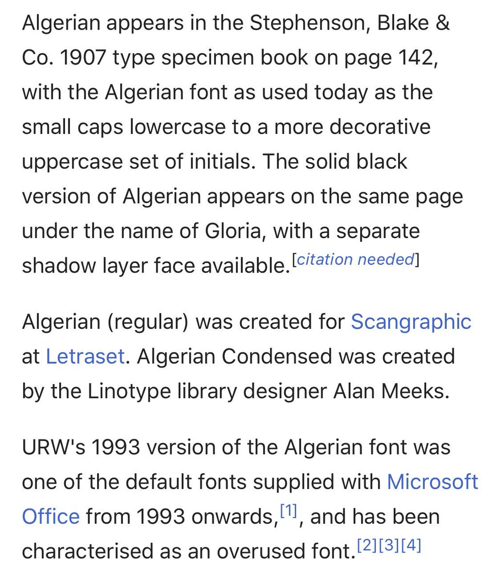 When I was a kid messing around on my parent’s computer - I can’t even remember what the software was, I feel like it was MS Office but I’m not sure...? I was very into this font. Algerian