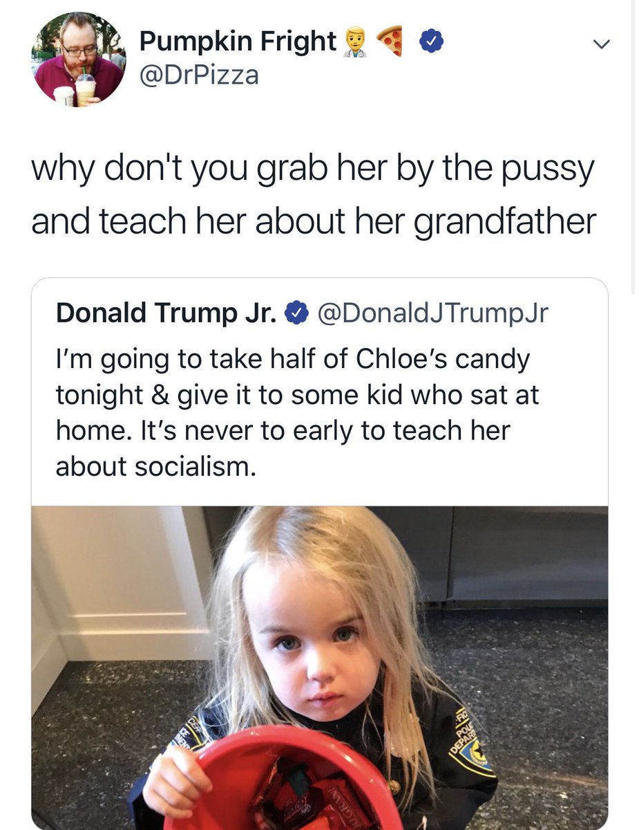 In the tweet below, he encourages the president’s son @DonaldJTrumpJr to molest his own toddler daughter.