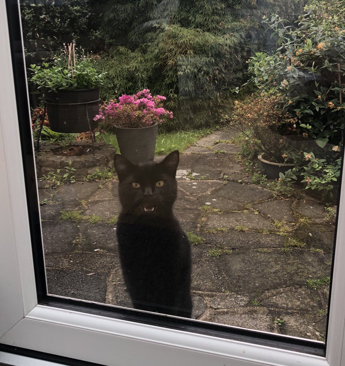 The cat is in the next room and not only is it miaowing loudly enough that I can hear it, it’s somehow managing to miaow with a questioning intonation, and the most remarkable part of all this is that we don’t have a cat.