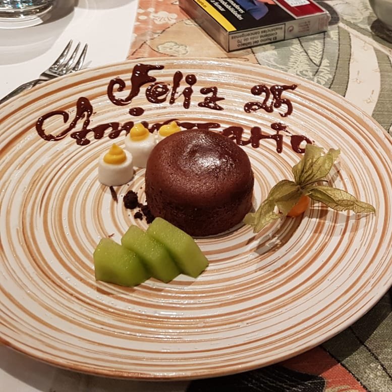 se acerca el camarero a nuestra mesa y le pregunta a mi madre a qué se debe estar los 4 cenando allí y ella le cuenta que celebramos mis 24 años y el 25 aniversario de mis padres a pesar de que fue en septiembre pero por cuestiones personales se tuvo que aplazar y él tal que así